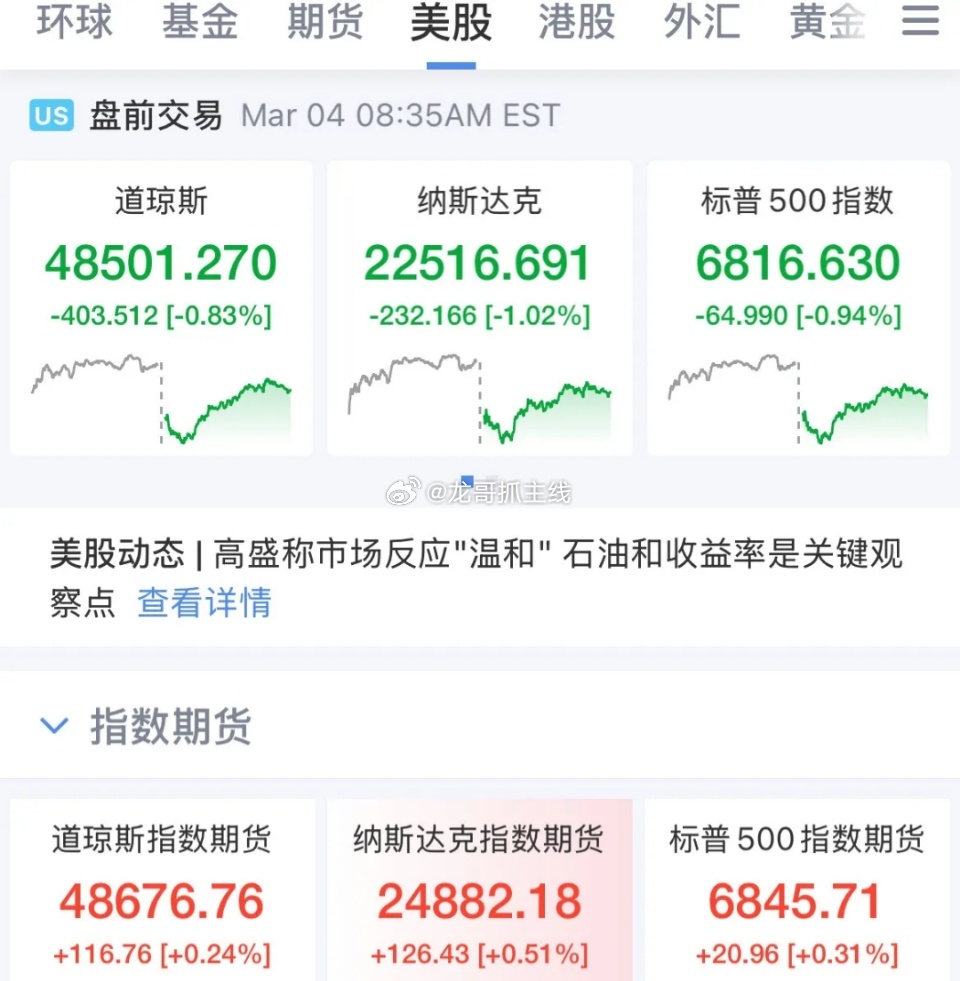 明天要回血了,拉升,美国2月“小非农”ADP超预期,美股盘前全线拉升上涨,贵金属上涨,A50期货上涨,恒生指数期货涨幅超1%,原油期货全线跳水