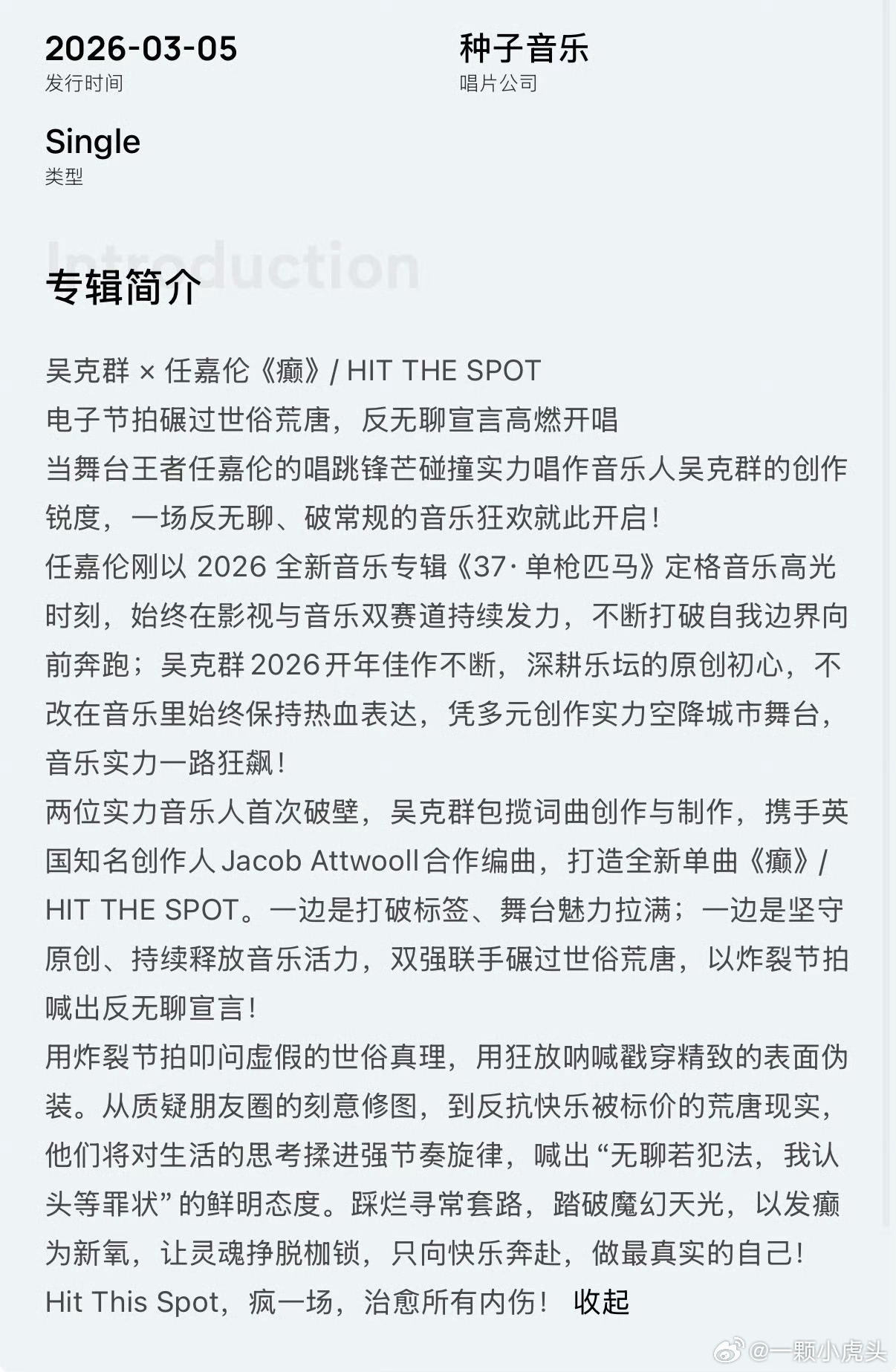 惊喜!任嘉伦、吴克群合作的新歌《癫》上线啦!各大平台听起来!!