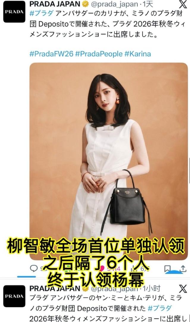杨幂PRADA 大秀认领情况! PRADA 大秀已经过去好几天了,杨幂今天的热搜依旧是“Prada杨幂首图领衔认领”不过柳智敏粉丝战斗力也很强,列出了杨幂各平台被认领的顺序,海外平台认领顺序确实都不如柳智敏,不过内娱平台这边总是炒作她首图领衔认领,现在很多粉丝都有海外社媒,早就不是媒体说啥网友信啥的时代了。