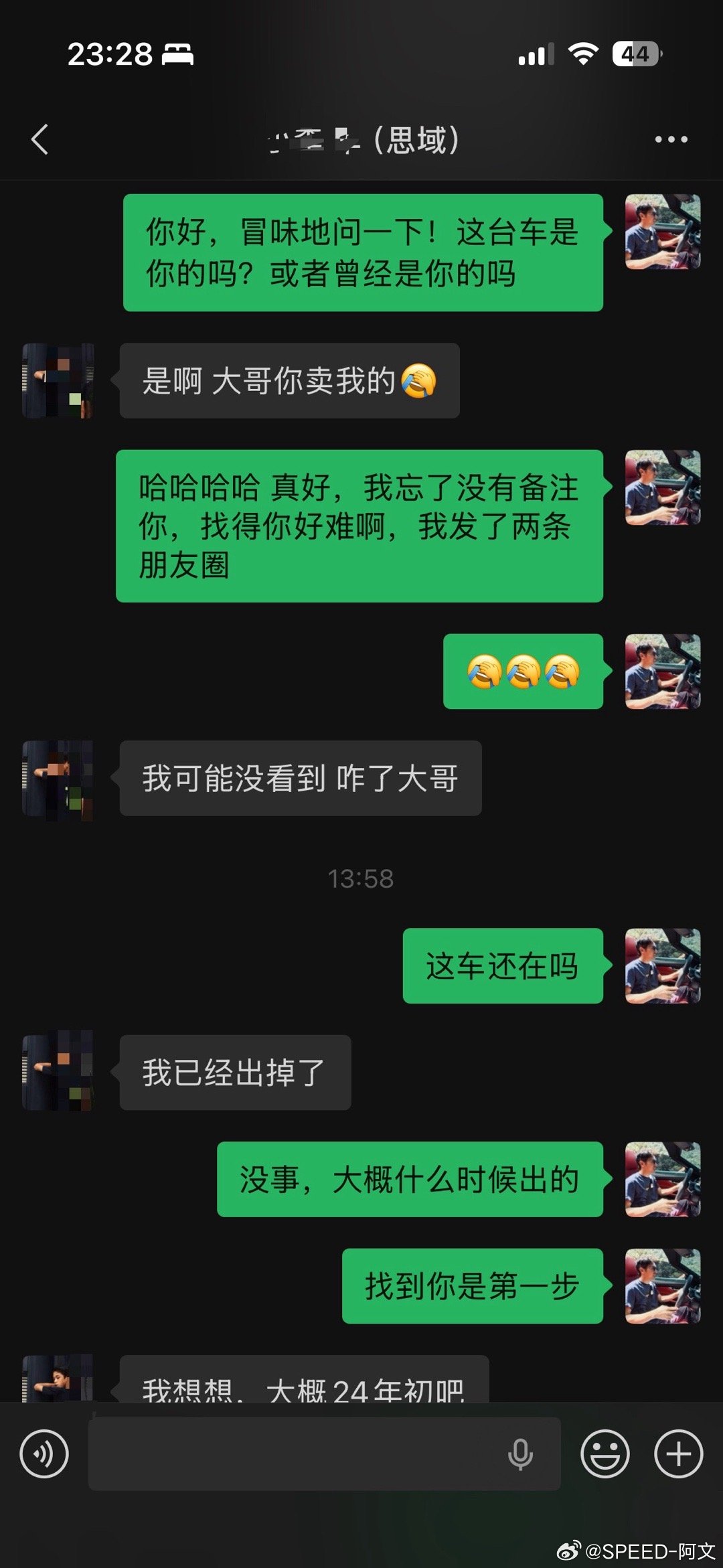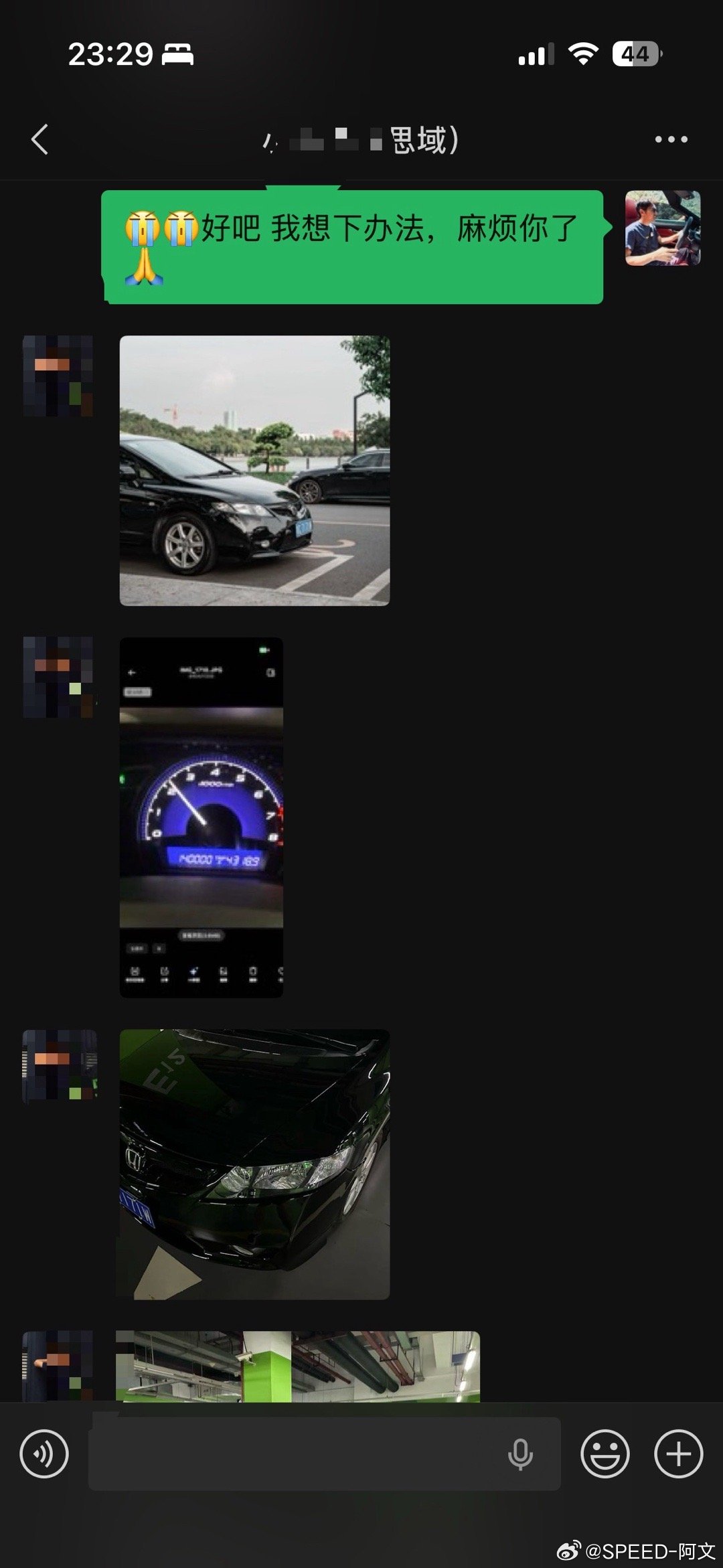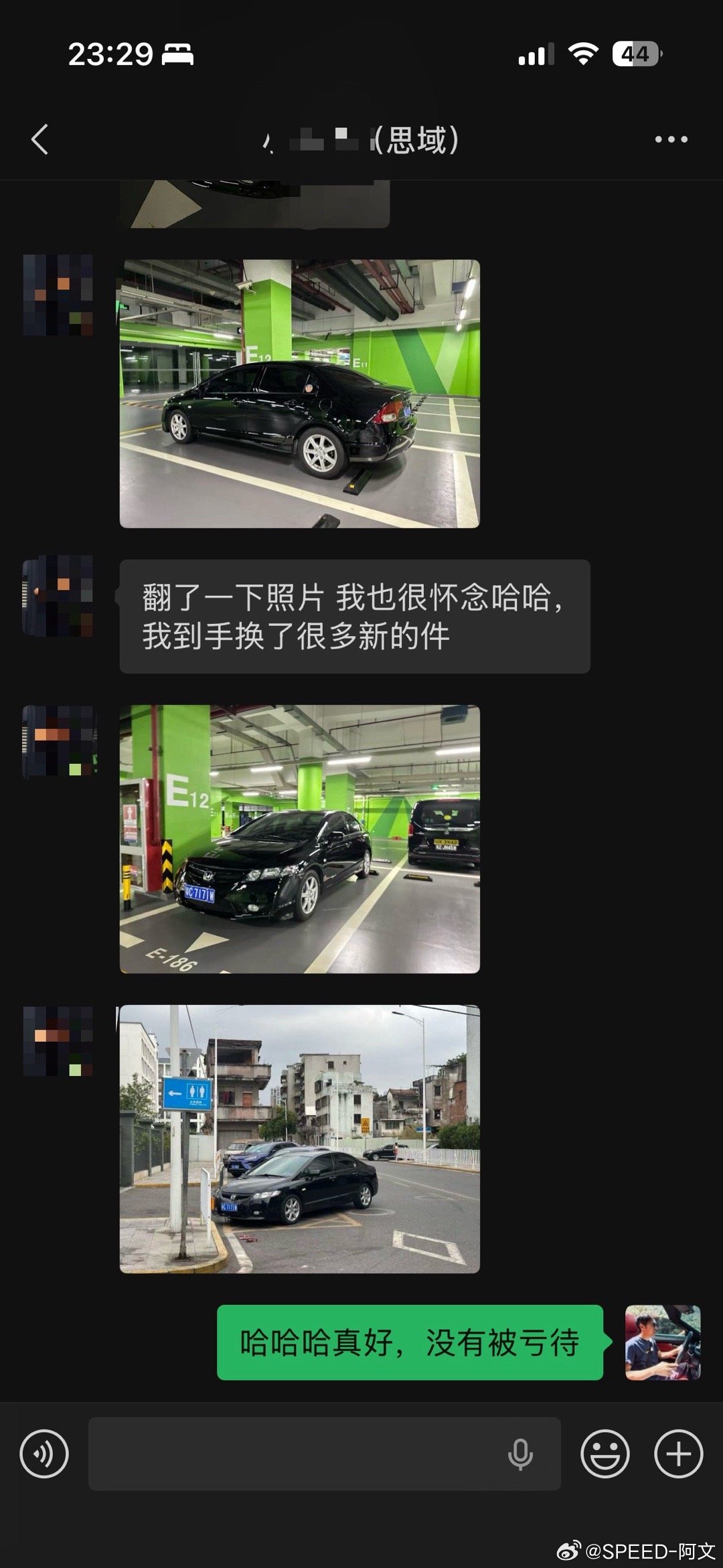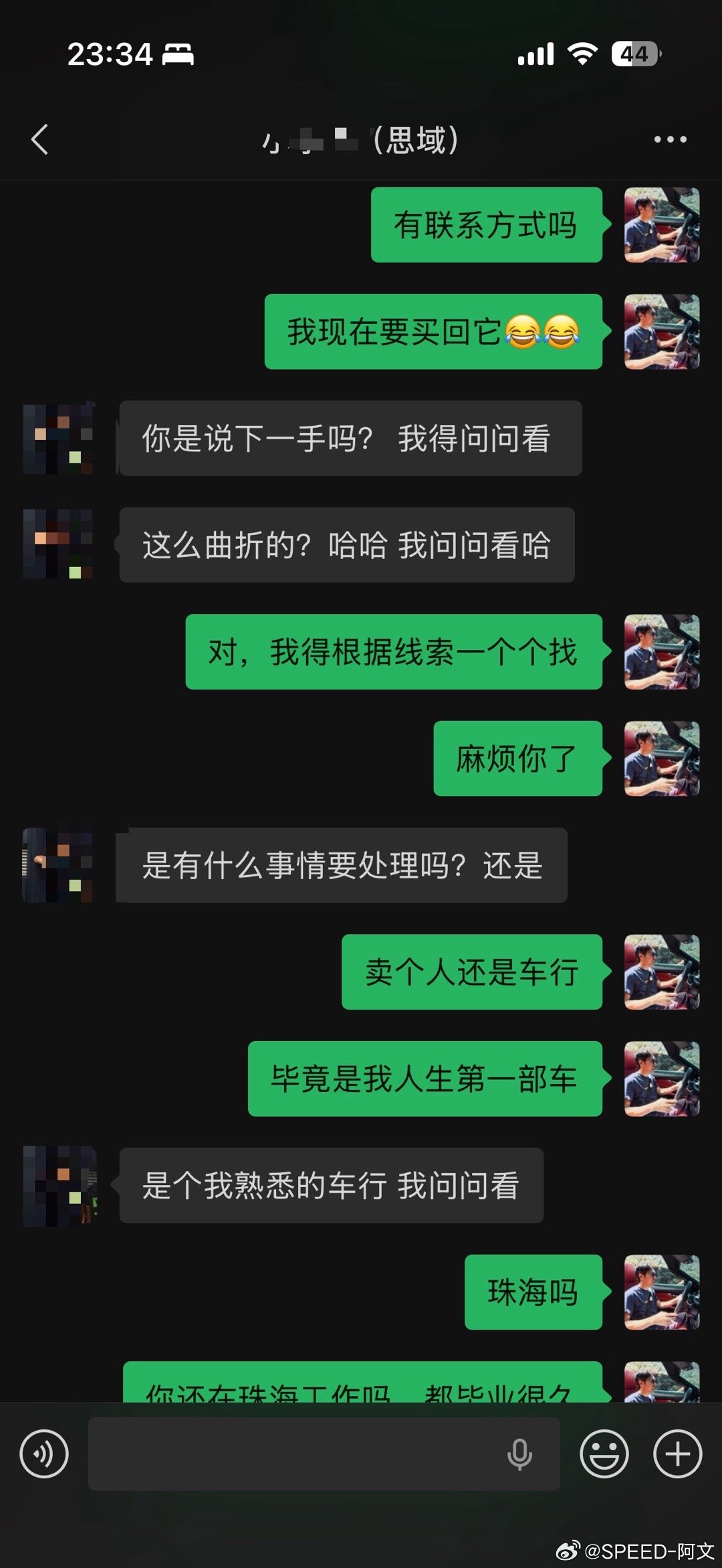 最近我在找我买的人生中第一辆车,想买回它。在17年买的二手车,21年卖了。是一台09年生产最经典的八代半本田思域。当时这个买主还是个我家附近上的大学生,花了4万2买了,上午搞完手续,下午就拉去修理厂改装了。当时临走前我还跟他说,好好对待它,就算改也不要鴝改。这个买主也是我最近找了很多天才在朋友圈找到的,因为当时忘了给他备注啥,所以只能靠记忆一个个通讯录这样找,发了几条朋友圈也没回复我。也试过通过我仅存的保险单才查到他的车牌,但是也找不到电话,我想或许只能找交警大队了。但今天我在通讯录里看到他的头像,我的直觉告诉我就是他了,于是我就发了信息过去,于是就有了以上对话。遗憾的是,这台思域最后的车主信息还是中断了,因为他之后这两年经过车行又转手了几次。但我想继续,或者只能亲自到当地深圳车行去看看了解情况了。刚才这位车主知道我的遗憾后也发来了一些照片和感慨,毕竟应该也是他人生中的第一台车吧。可以看出他也是个爱车之人,思域保养的很好,看着比我以前还新正。相处了3年后,他也卖掉了。于是从一个男孩变成了一个男人,也从一个草根烂仔变成了一个精致烂仔,因为我从他朋友圈得知,他换了最新或许也是最后一台本田Type-R FL5。此时此刻,我还有点羡慕起他了,因为在刚好的年纪遇上刚好的车,真好,人生足矣。
