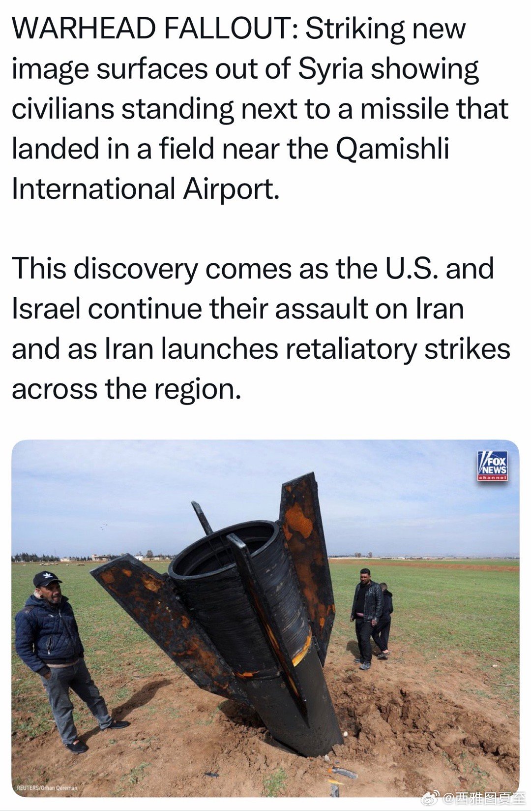 伊朗的反击,包括向叙利亚发射一枚导弹,目标是机场现场图片今天曝光: