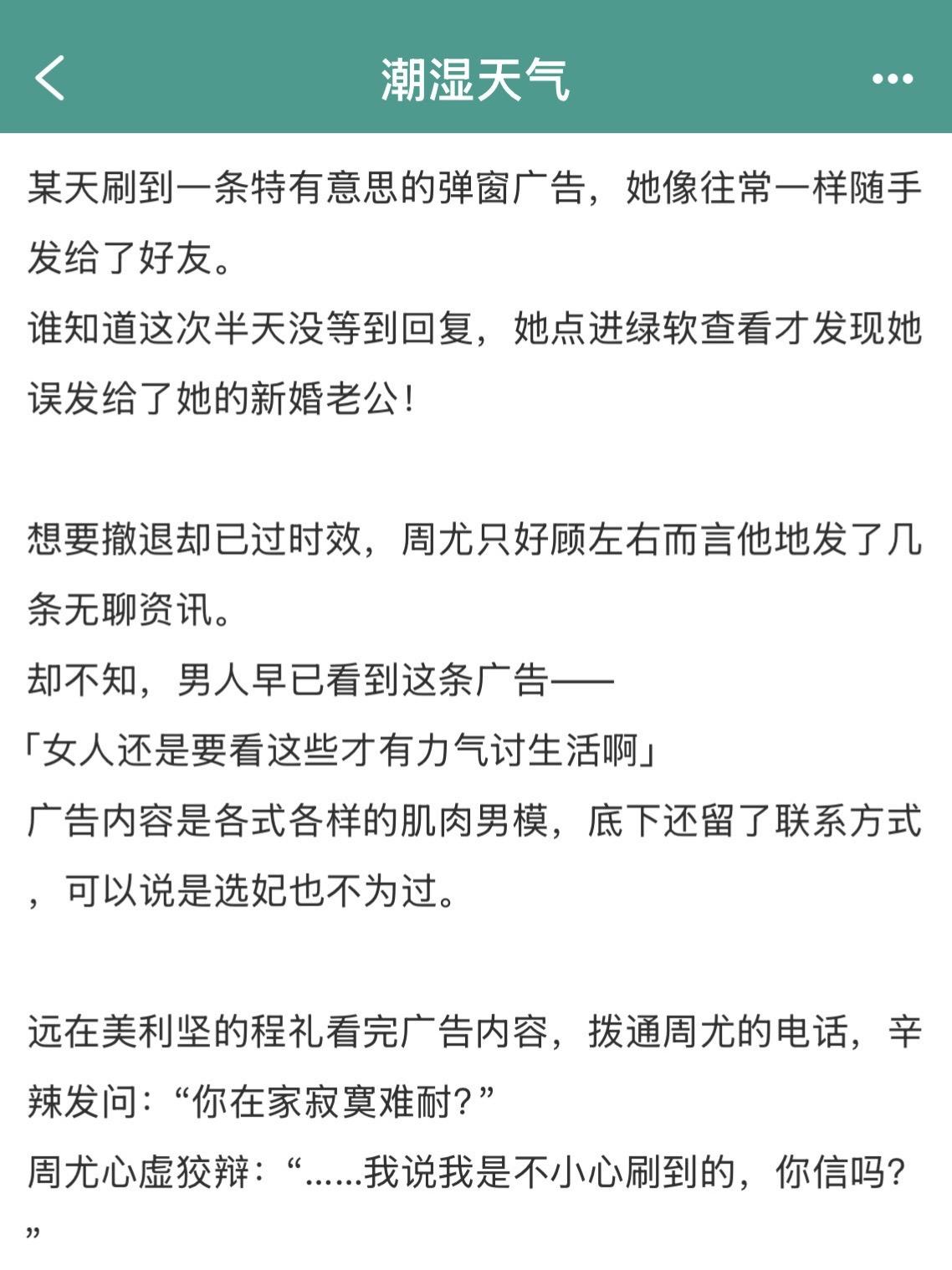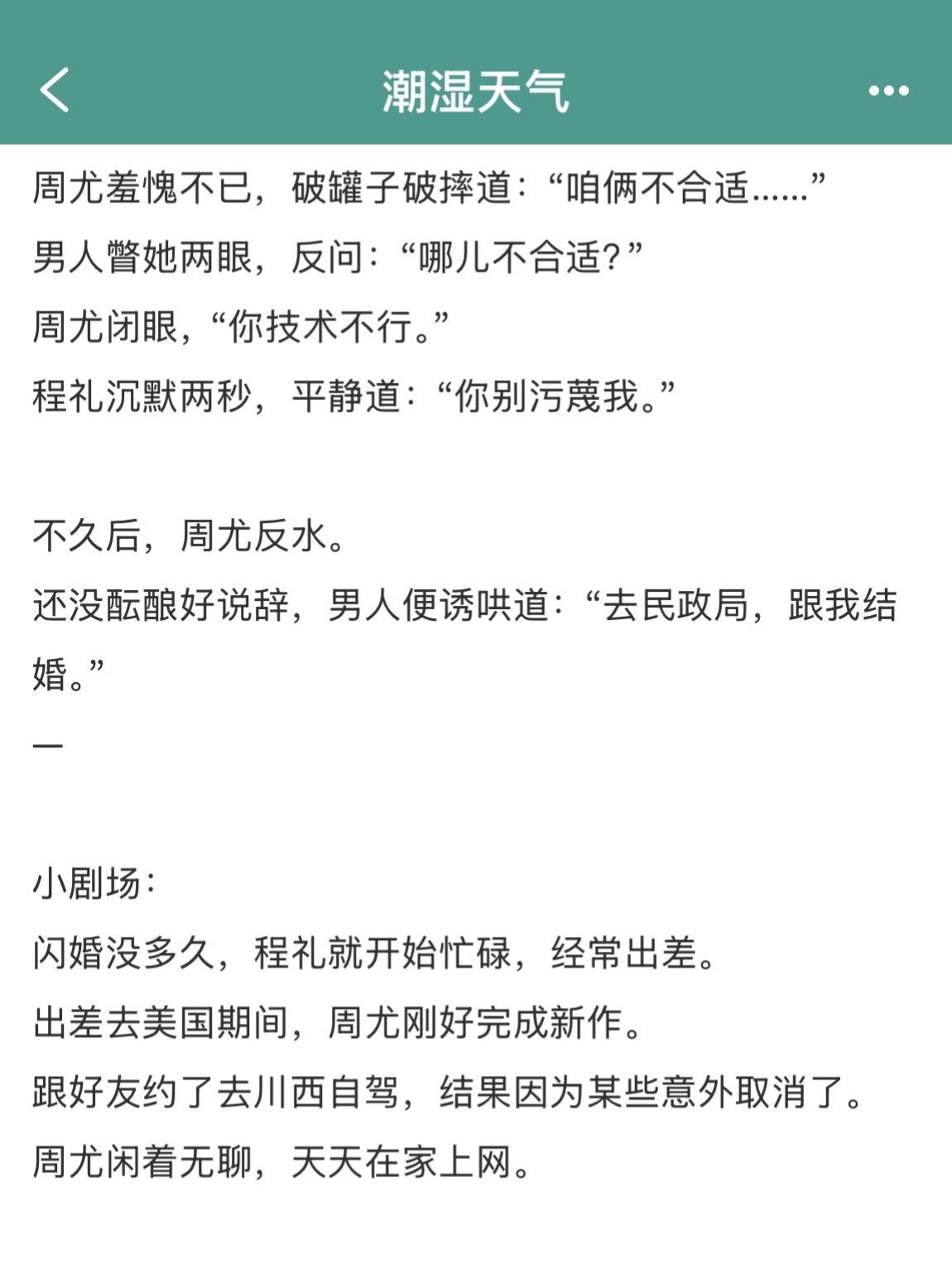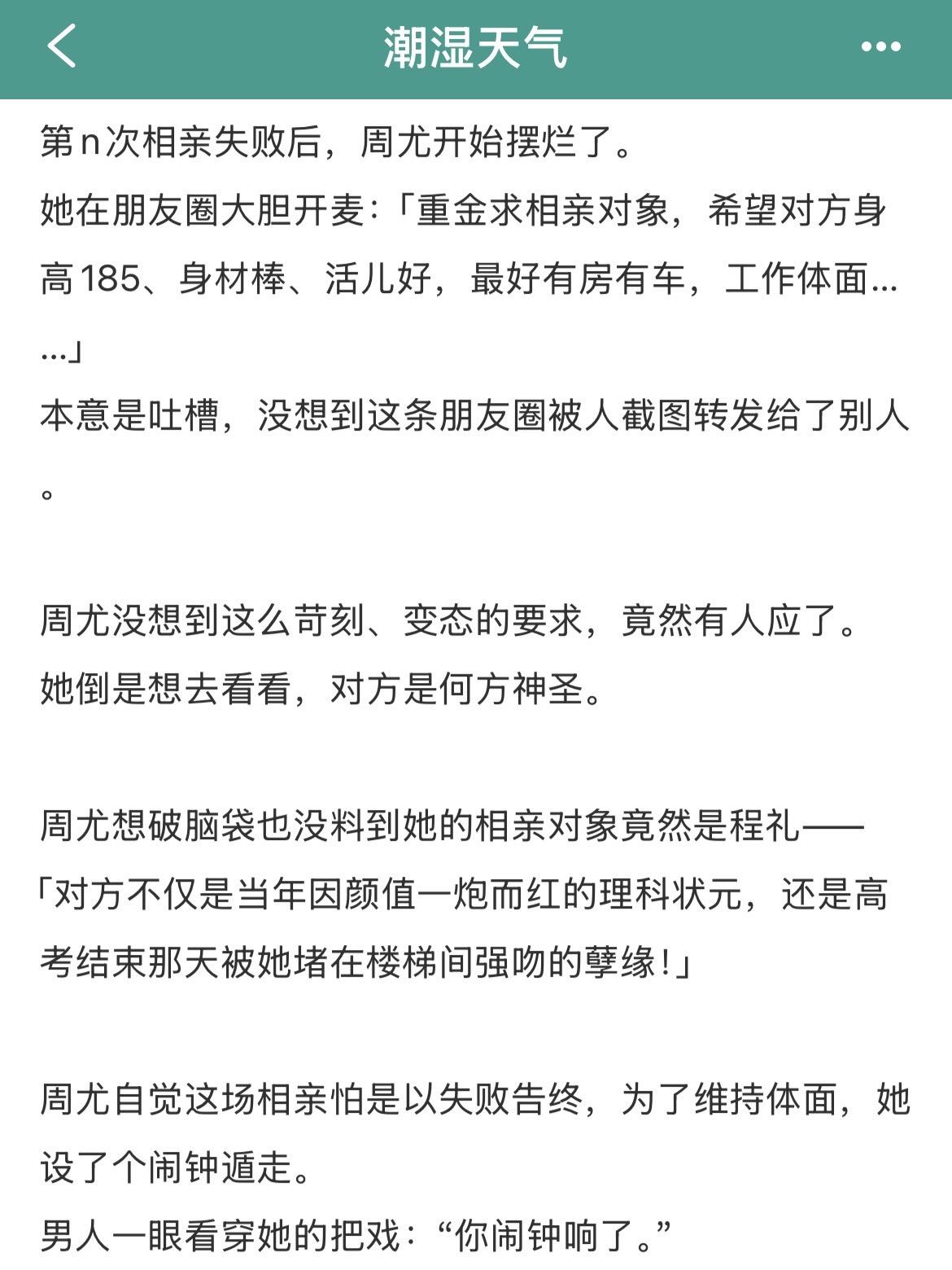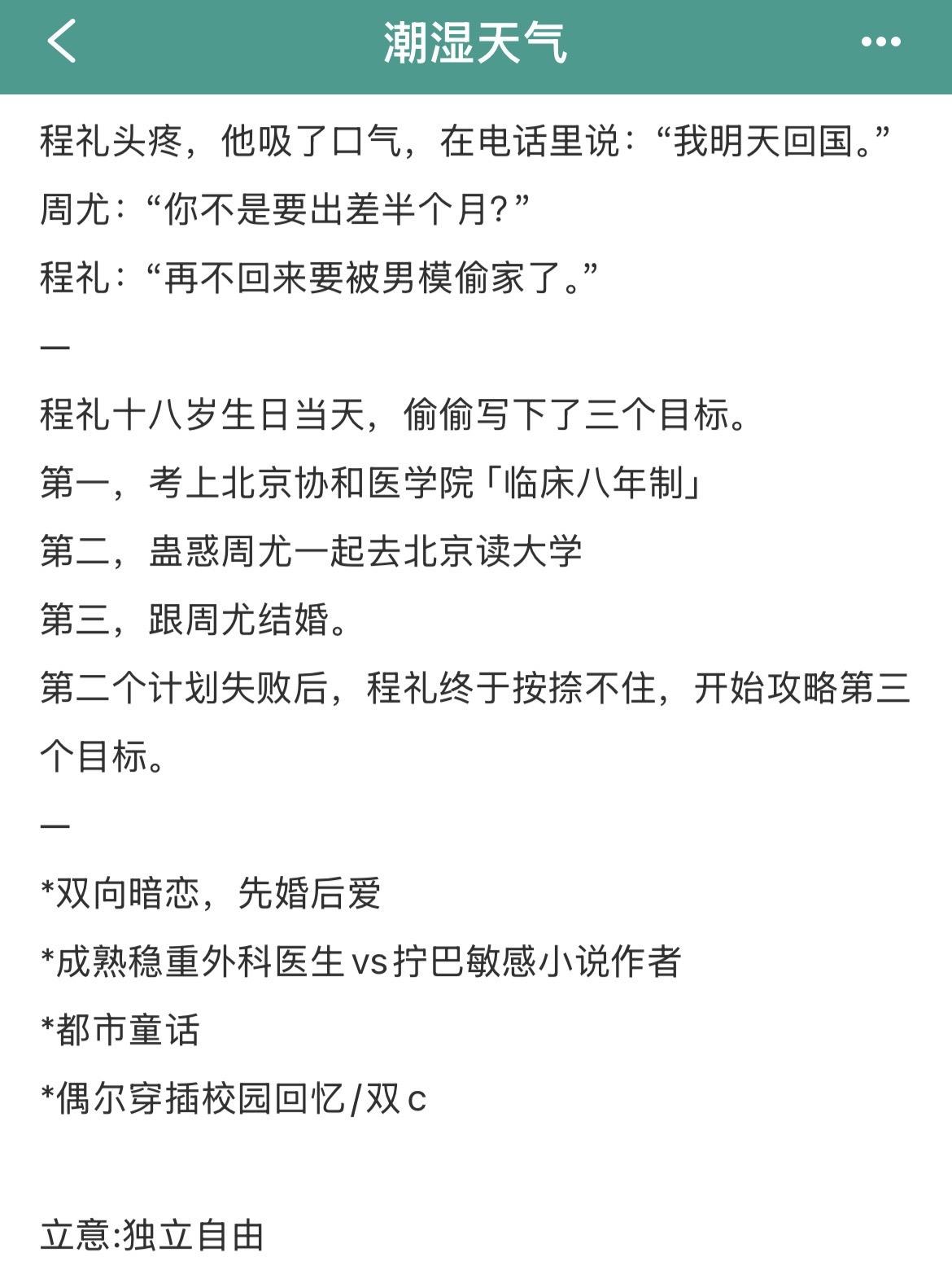 先婚后爱丨人夫感医生vs拧巴作者。先婚后爱丨人夫感医生vs拧巴作者 ※先婚后爱+双向暗恋+双c。 ※偶尔穿插校园回忆+都市童话。 书名:《潮湿天气》 作者:宋昭 标签:现言小说、先婚后爱文、双向暗恋文、完结文