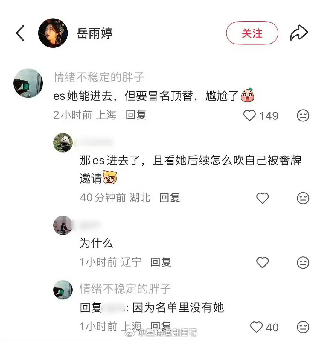岳雨婷吹了好几天的品牌邀请竟然是自费而且被退货。LV的超级vip富哥胖子说岳雨婷