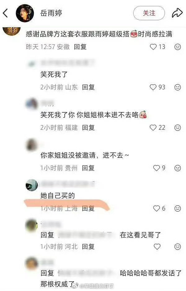 曝岳雨婷没被品牌方认领