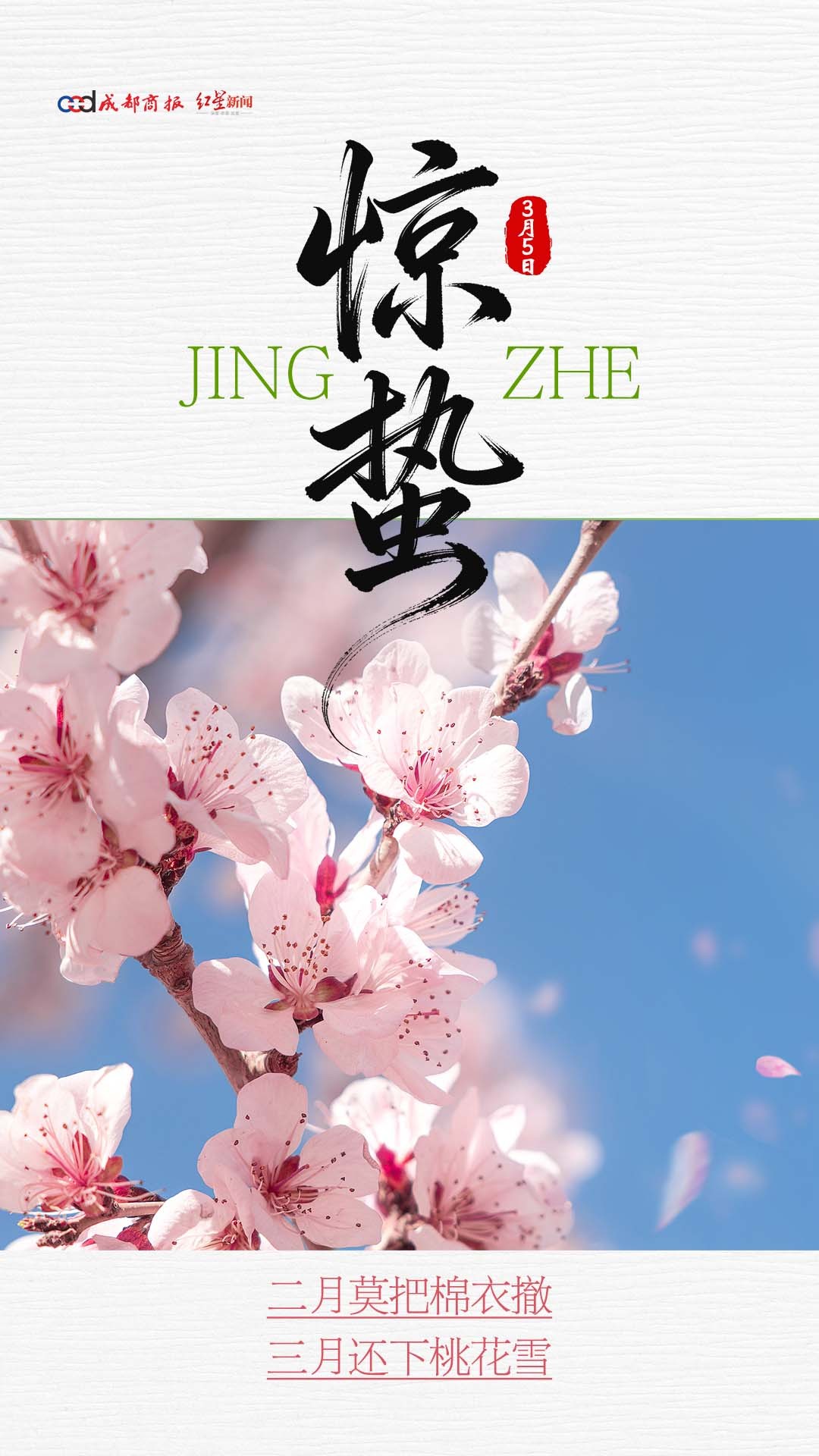 #惊蛰至万物生# 【#惊蛰迎来赏花好时节#】①今日迎来惊蛰;②惊蛰是春季的第三个节气,惊蛰标志着仲春时节开始;③融融春光中,繁花似锦,多地迎来赏花好时节;④此时节,气温波动较大,应适当增减衣物,避免受凉感冒。#惊蛰唤醒生机盎然的春天#