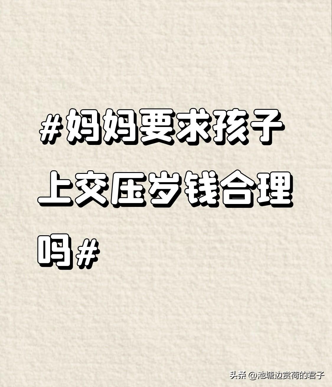 妈妈要求孩子上交压岁钱合理吗 妈妈要求孩子上交压岁钱合不合理,这事儿得分情况看。小时候我妈也收过我的压岁钱,说是帮我保管,可之后就没下文了。从孩子角度看,这钱是长辈给的,自己有支配权,上交就像美梦破灭,心里肯定不爽。但换个角度,小孩子缺乏理财能力,可能拿到钱就乱花,比如买一堆没营养的零食、贵却没用的玩具。妈妈帮忙保管,能避免这种情况。而且有些压岁钱是人情往来,妈妈收回来也算情理之中。所以不能一概而论,妈妈可以和孩子商量着来,让孩子也参与到压岁钱的管理中。