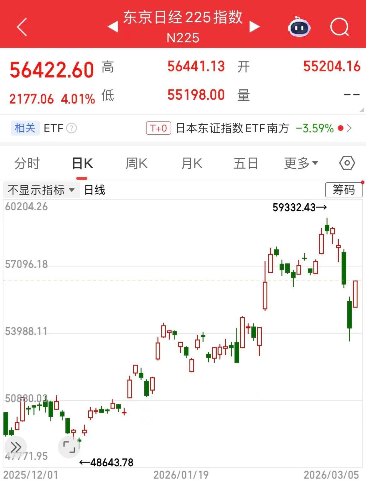 #韩日股市大反弹# 3月5日,日经225指数涨幅扩大,现涨4.0%,最新报564