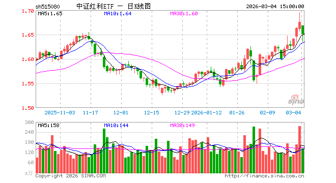 3月4日,中证红利ETF(515080)跌1.49%,成交额2.36亿元。当日份额增加3000.00万份,最新份额为47.48亿份,近20个交易日份额减少5.62亿份。最新资产净值计算值为78.33亿元。