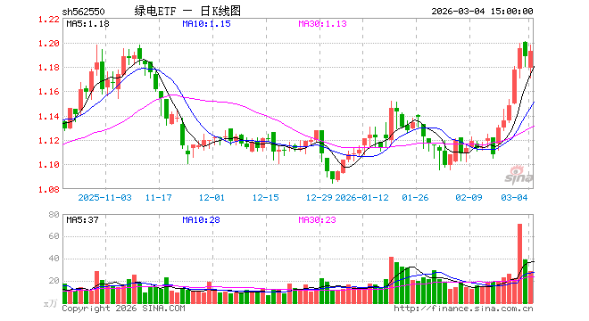 3月4日,绿电ETF(562550)涨0.42%,成交额3364.37万元。当日份额增加350.00万份,最新份额为3.93亿份,近20个交易日份额增加3350.00万份。最新资产净值计算值为4.69亿元。