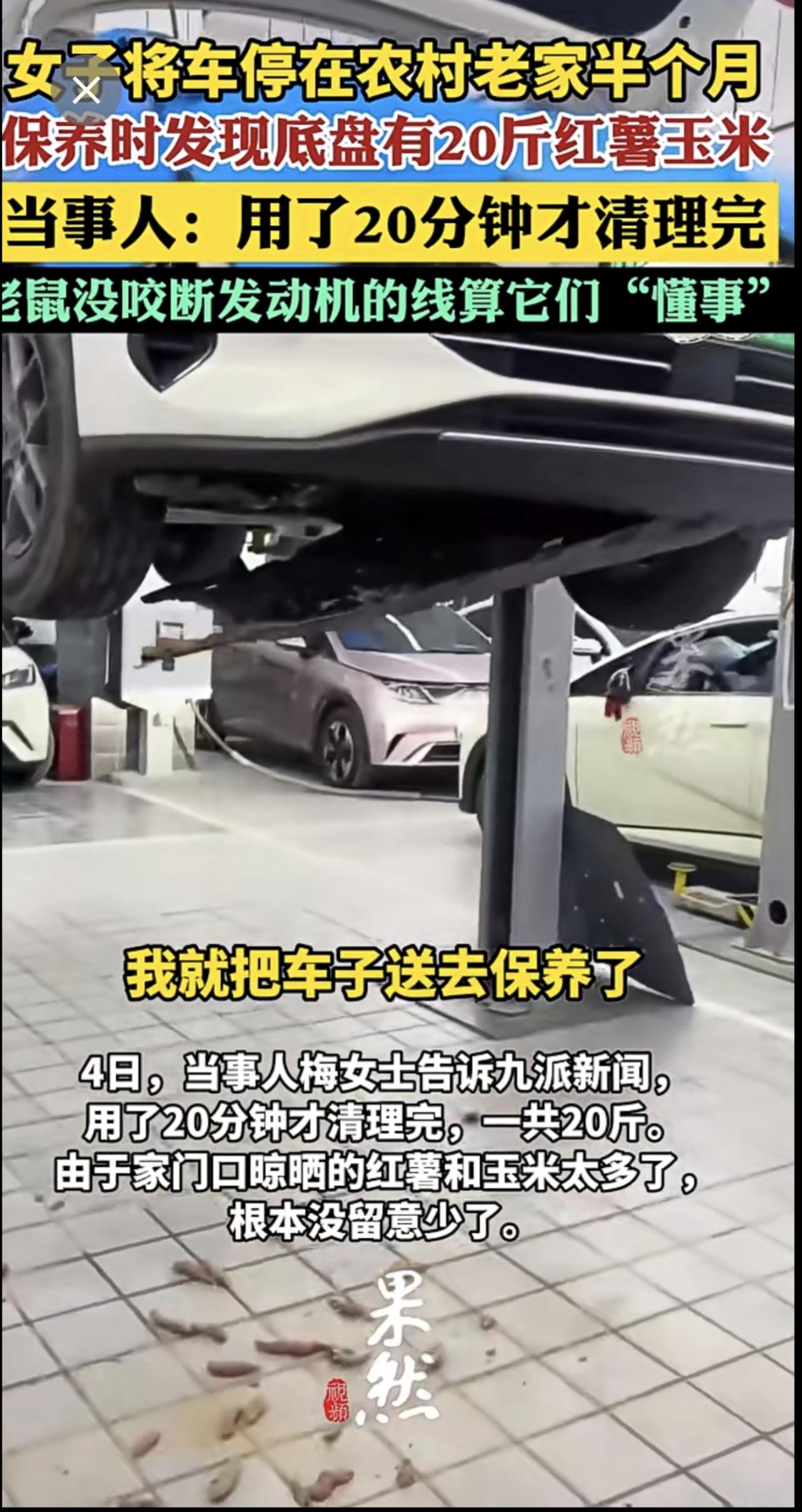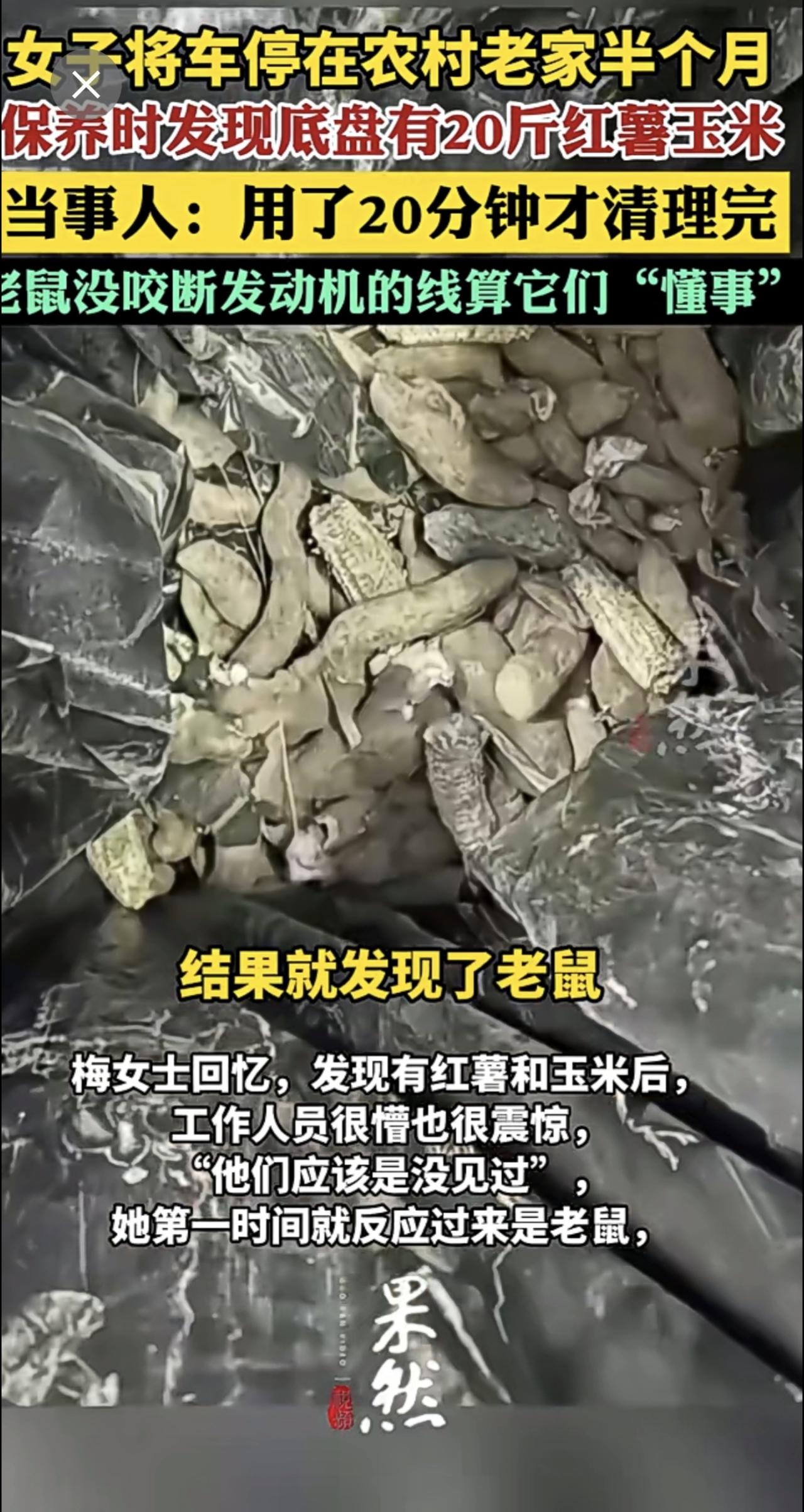 车停半个月底盘现20斤红薯玉米[捂脸]