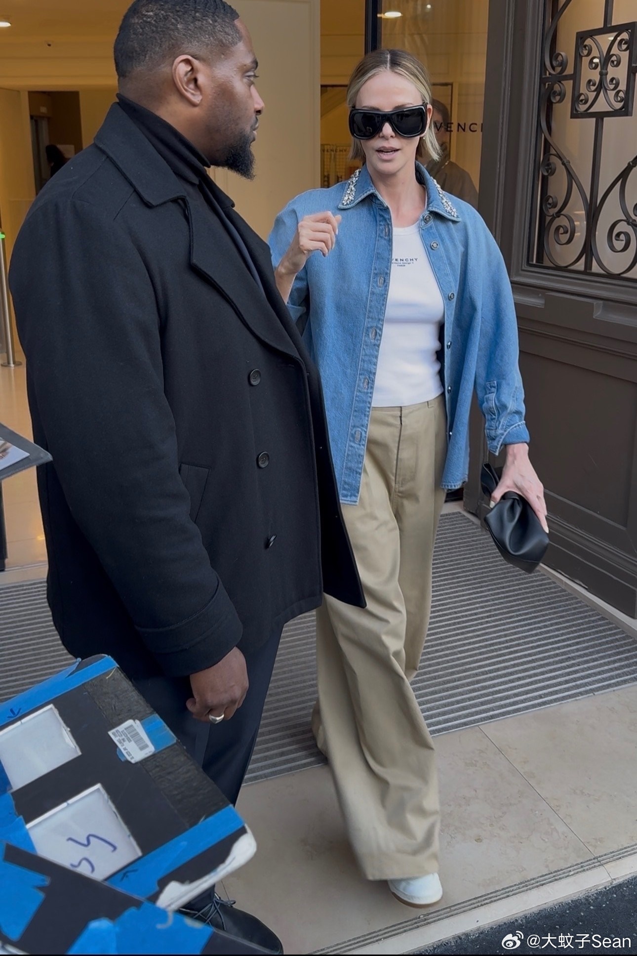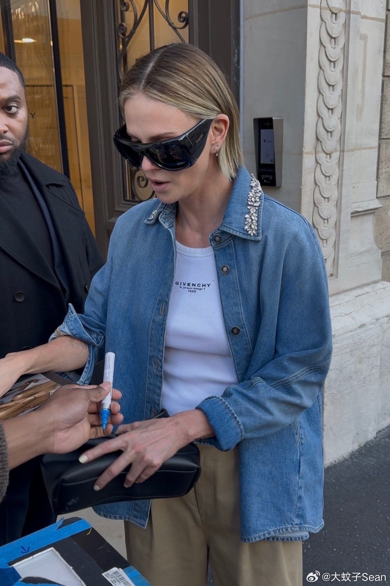 Charlize Theron查理兹塞隆在巴黎外出,试装后离开Givenchy工作室,甚至塞妈还停下脚步为门口等候的粉丝签名