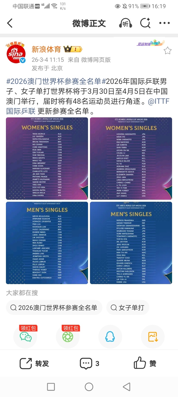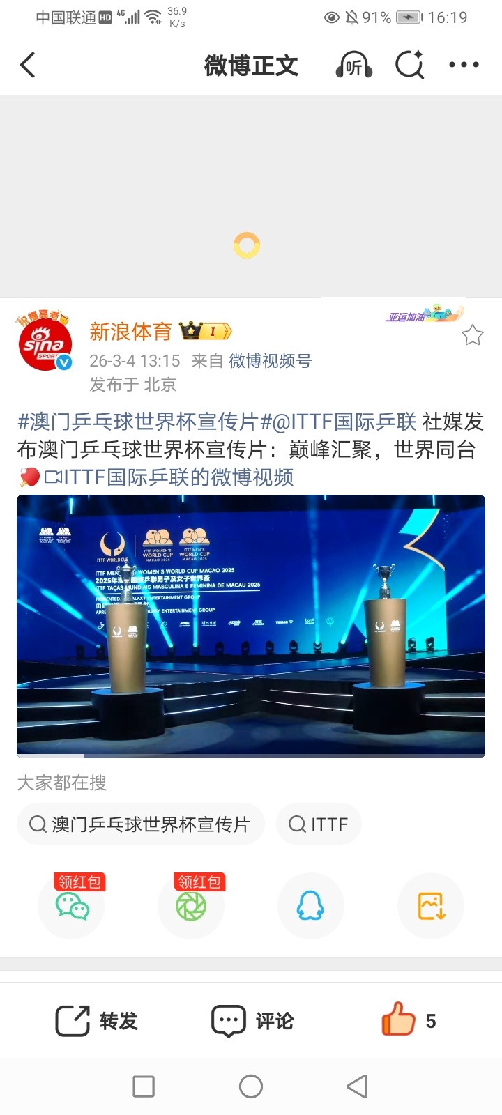 2025年3月5日-(惊蛰/雷锋纪念日/学雷锋活动日) 2026米兰-科尔蒂纳冬残奥会轮椅冰壶混双循环赛 意大利-韩国/日本3-10中国(中国轮椅冰壶混双队取得开门红)/英国-爱沙尼亚/拉脱维亚-美国 2026中国女篮热身赛长沙站 中国74-69加时艰难战胜巴西(中国女篮在一度领先19分的情况下 第四节进攻端一度断电 对方连续打反击(外线超远三分追平比分 进入加时 比赛跌宕起伏 王思雨21分/杨舒矛与刘禹彤各得到12分/张子宇10分) 2026WCBA俱乐部杯决赛阶段1/4决赛循环赛第2轮 东莞(广东)57-81惨败北京(广东女篮遭遇两连败)/四川89-84山西(四川女篮获得两连胜) 2025-2026女排超级联赛A级季后赛第3轮(第17轮) 山东3-0浙江(25-7 25-12 25-18)(浙江女排遭遇三连败)/福建0-3江苏(14-25 17-25 19-25)(卫冕冠军江苏女排获得三连胜) B级季后赛第二阶段首轮(第16轮) A组 四川1-3被上海青年队逆转(25-13 15-25 22-25 23-25) (上海青年女排获得七连胜/四川女排终结三连胜)/江西1-3江苏青年队(22-25 20-25 26-24 21-25)(江苏青年女排获得五连胜/江西女排遭遇两连败)/深圳3-0山东青年队(25-22 37-35 25-17)(深圳女排获得三连胜/山东青年女排遭遇五连败) B组 辽宁3-0福建青年队(25-16 25-16 25-18)(上届季军辽宁女排终结四连败/福建青年女排遭遇五连败)/云南3-0辽宁青年队(25-21 25-22 25-23)(云南女排终结两连败/辽宁青年女排终结四连胜)/河北0-3南京师范大学(18-25 10-25 19-25)(南京师范大学女排获得九连胜/河北女排遭遇十一连败) 2025-2026男排超级联赛B级季后赛第二阶段首轮(第16轮) A组 四川2-3被中山大学逆转(20-25 28-26 25-20 23-25 17-19)(四川男排遭遇三连败)/湖北3-1上海青年队(25-16 25-19 24-26 25-21)(/辽宁3-0河北青年队(25-22 26-24 25-14)(河北青年男排遭遇六连败) B组 浙江3-0轻取广东青年队(25-15 25-6 25-13)(浙江男排终结四连败)/河南3-1南昌大学(25-14 25-20 23-25 25-19)(河南男排获得两连胜/南昌大学男排终结九连胜 遭遇首败)/云南3-0福建青年队(25-14 25-14 25-16)(云南男排终结三连败/福建青年男排遭遇两连败) 2026CBA热身赛 辽篮101-94北控(新外援哈维15分) 2026女足亚洲杯小组赛C组首轮 日本2-0中国台北/越南2-1印度 部分重点赛事预告:CCTV5直播:17:00 2026米兰科尔蒂纳冬残奥会轮椅冰壶混双循环赛 中国-拉脱维亚 19:00 2025-2026男排超级联赛A级季后赛第3轮(第17轮) 北京-河北 CCTV5+直播:10:55/16:55 2026女足亚洲杯小组赛A组第2轮 菲律宾-韩国/伊朗-澳大利亚 CCTV5客户端直播:17:05 2026米兰科尔蒂纳冬残奥会轮椅冰壶混双循环赛 爱沙尼亚-意大利/日本-美国/英国-韩国13:00/15:00/17:00 2025-2026女排超级联赛B级季后赛第二阶段第2轮(第16轮) A组 上海青年队-江西/深圳-四川/山东青年队-江苏 B组 辽宁-云南/辽宁青年队-河北/福建青年队-南京师范大学 19:00(2场)/20:00 2025-2026男排超级联赛A级季后赛第3轮(第17轮) 天津-福建/山东-江苏/广东-上海 19:30 2025-2026CBA常规赛第一阶段补赛 山东-广州 13:00/15:00/17:00 B级季后赛第二阶段第2轮(第16轮) A组 上海青年队-四川/河北青年队-中山大学/辽宁-湖北 B组 广东青年队-南昌大学/福建青年队-河南/浙江-云南 其他:17:00/19:30 2026WCBA俱乐部杯决赛阶段1/4决赛循环赛第2轮 新疆-江苏/山东-合肥