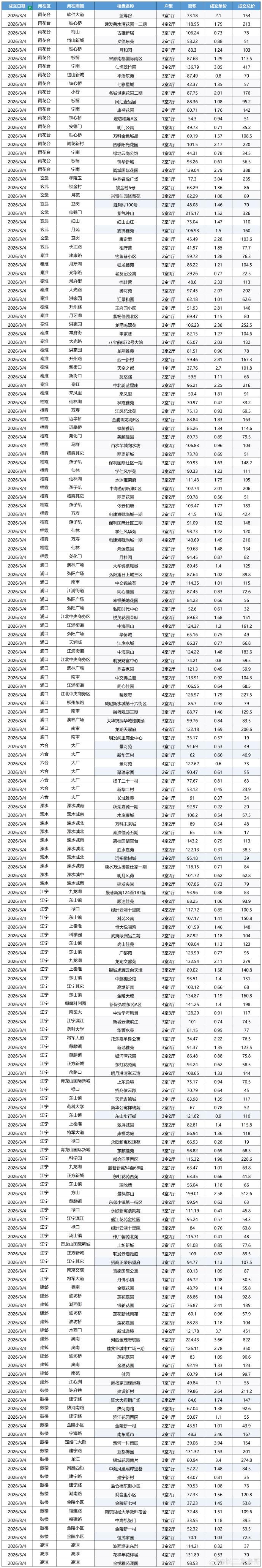 合肥隔壁的六朝古都,南京3月4号二手房成交的实时情况。成交量还是很多。 之前有人说省会城市买房的多很正常,因为体制内的多,高额公积金有的不买房都不知道咋用。