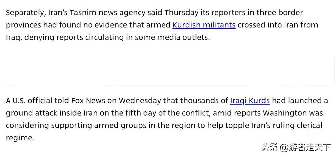 一位美国官员在当地时间3月4号告诉《福克斯新闻》,有数千名伊拉克库尔德人在冲突的第5天,对伊朗境内发动了地面进攻。 关于这一消息,伊朗《塔斯尼姆通讯社》在当地时间3月5号表示,三个边境省份没有找到武装的库尔德分子从伊拉克进入伊朗的证据。 库尔德人是生活在中东地区的操着伊朗语系的游牧民族,目前总人口大约3000多万,主要分布于土耳其、叙利亚、伊拉克、伊朗境内。 伊拉克大约有800万,伊朗大约有1000万。 叙利亚大约有300万,土耳其大约有1500万。 在这几个国家里,实力最强的是伊拉克库尔德人和叙利亚库尔德人,他们都有自己强大的武装,甚至有很强的独立性。 同时,库尔德人和美国的关系比较好,他们一直希望美国能够支持其建立属于自己的国家。 但对美国人来说,库尔德人没什么价值,往往需要的时候会利用一下,不需要了就弃之如草芥。 这次伊朗和美国、以色列之间的大战,也有可能成为库尔德人和美国合作的又一个契机。 然而需要指出的是,伊朗毕竟是一个拥有9000万人口的国家,这些年该国的军事装备虽然比较落后,但是地面部队的作战经验还算丰富,兵力也远超过库尔德武装,如果库尔德人向伊朗进攻的话估计没什么胜算。 况且,伊朗主要的军事目标位于该国的北部以及西南部,远离伊拉克库尔德人控制区。 就算他们向伊朗进攻,估计也起不到什么太大配合作用。