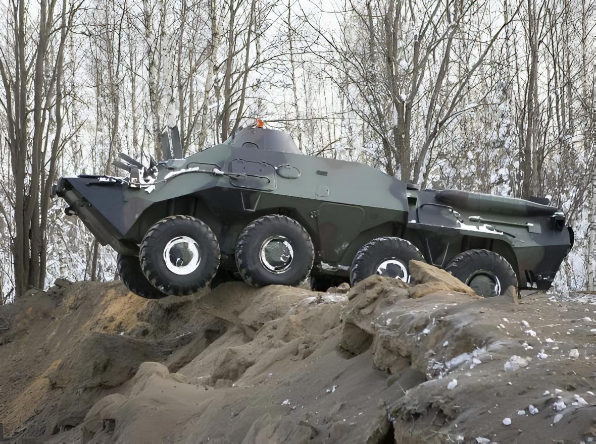 BTR-80装甲运兵车的炮塔顶部可360°旋转,其上装有一挺14.5毫米KPVT大口径机枪,辅助武器为一挺7.62毫米PKT并列机枪。车内可携带2枚9K34或9K38“针”式单兵防空导弹和一具RPG-7式反坦克火箭筒。该车可水陆两用,水上靠车后的单个喷水推进器推进,水上速度为9千米/小时。当通过浪高超过0.5米的水障碍时,可竖起通气管不让水流进入发动机内。此外,它还有防沉装置,一旦车辆在水中损坏也不会很快下沉。