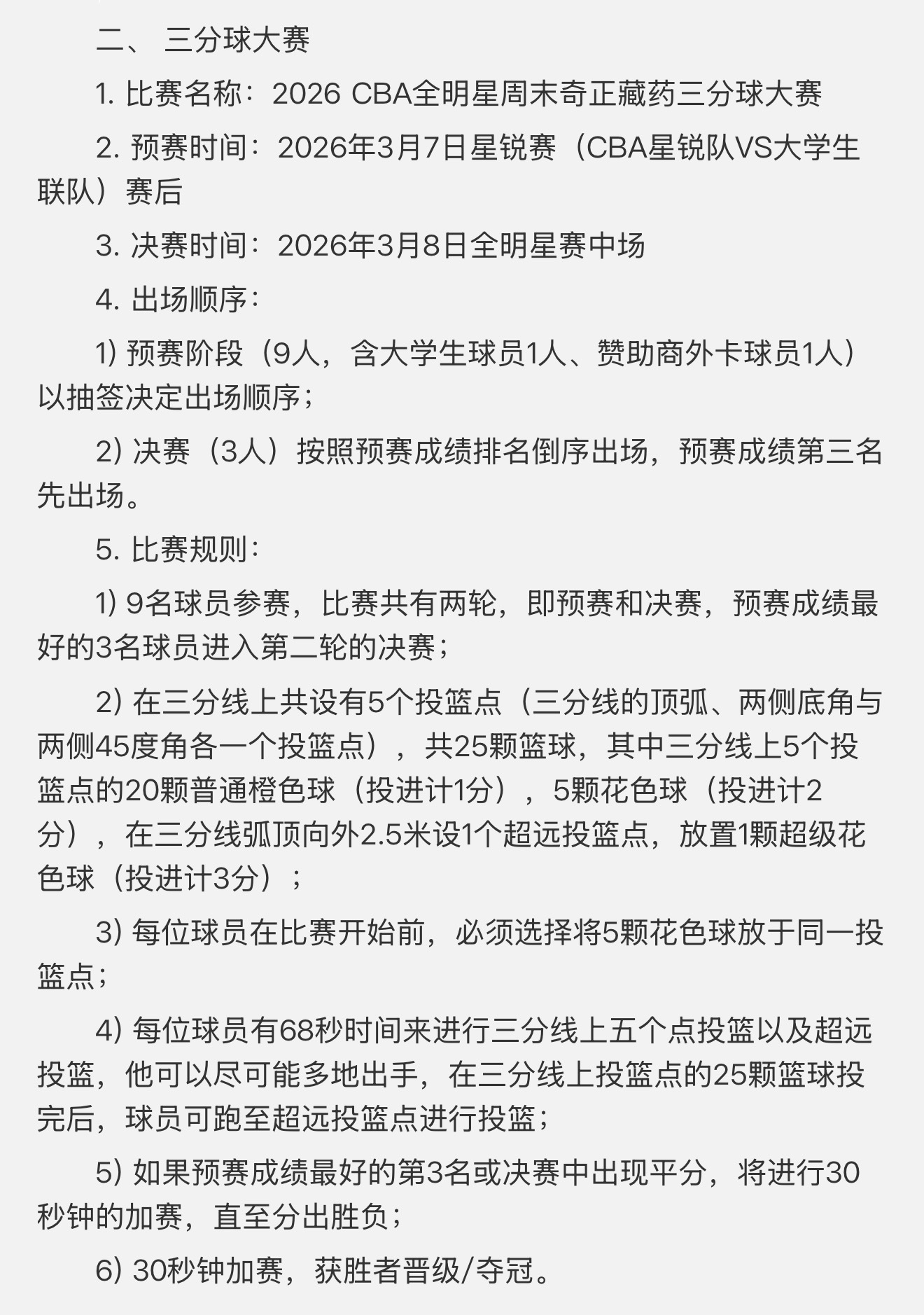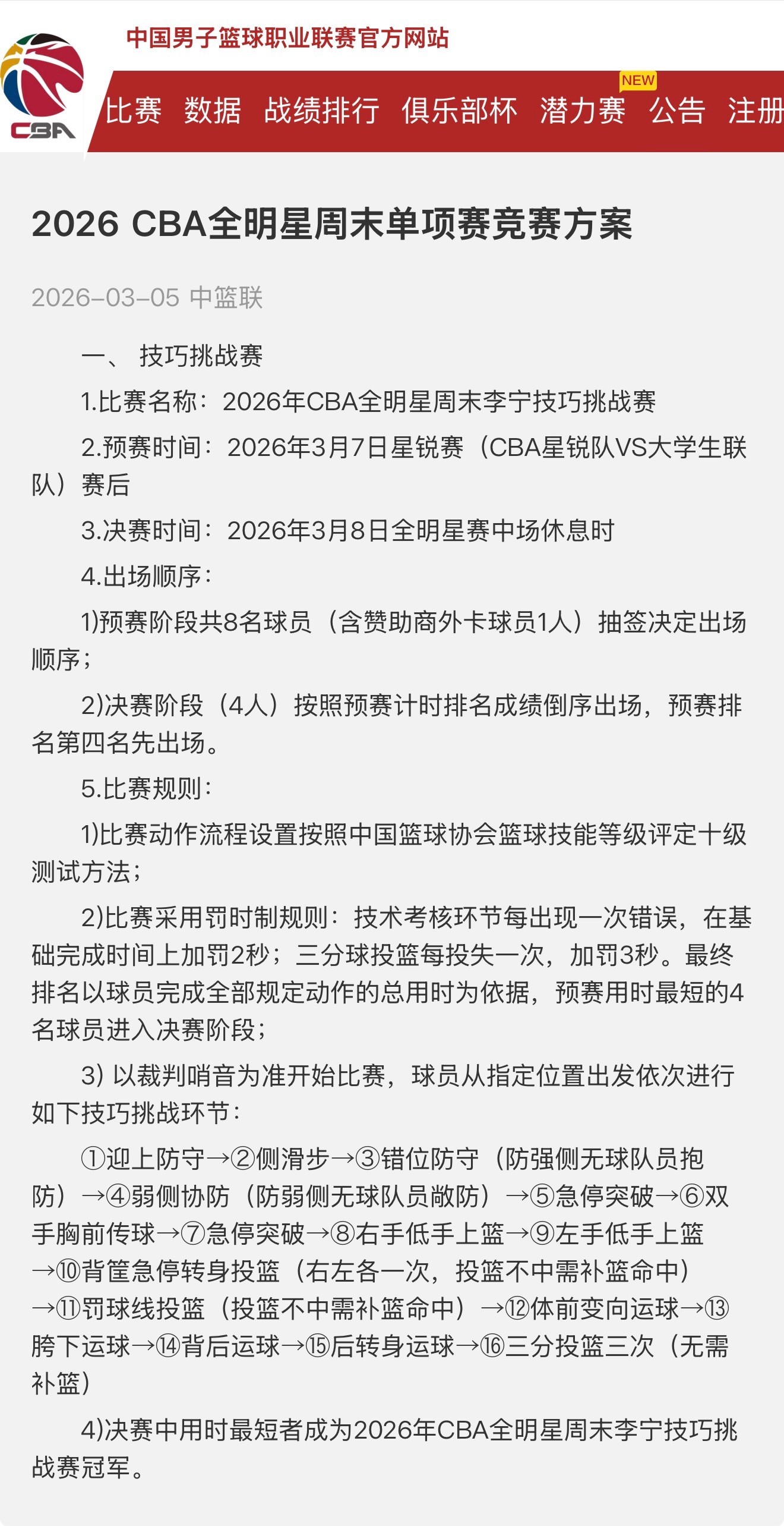 联赛官方发了2026cba全明星周末 单项赛的竞赛方案,值得一提的是,技巧大赛的