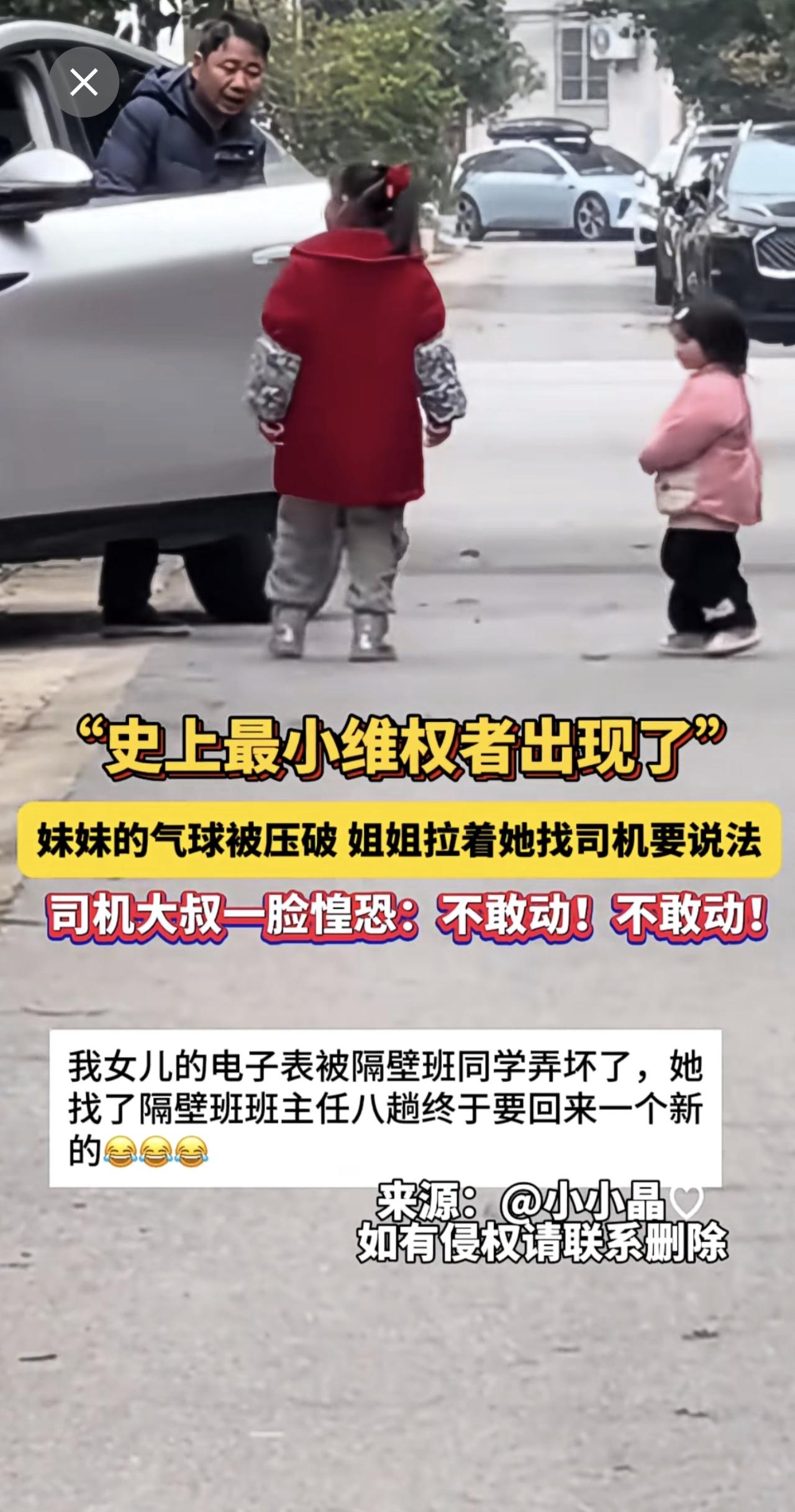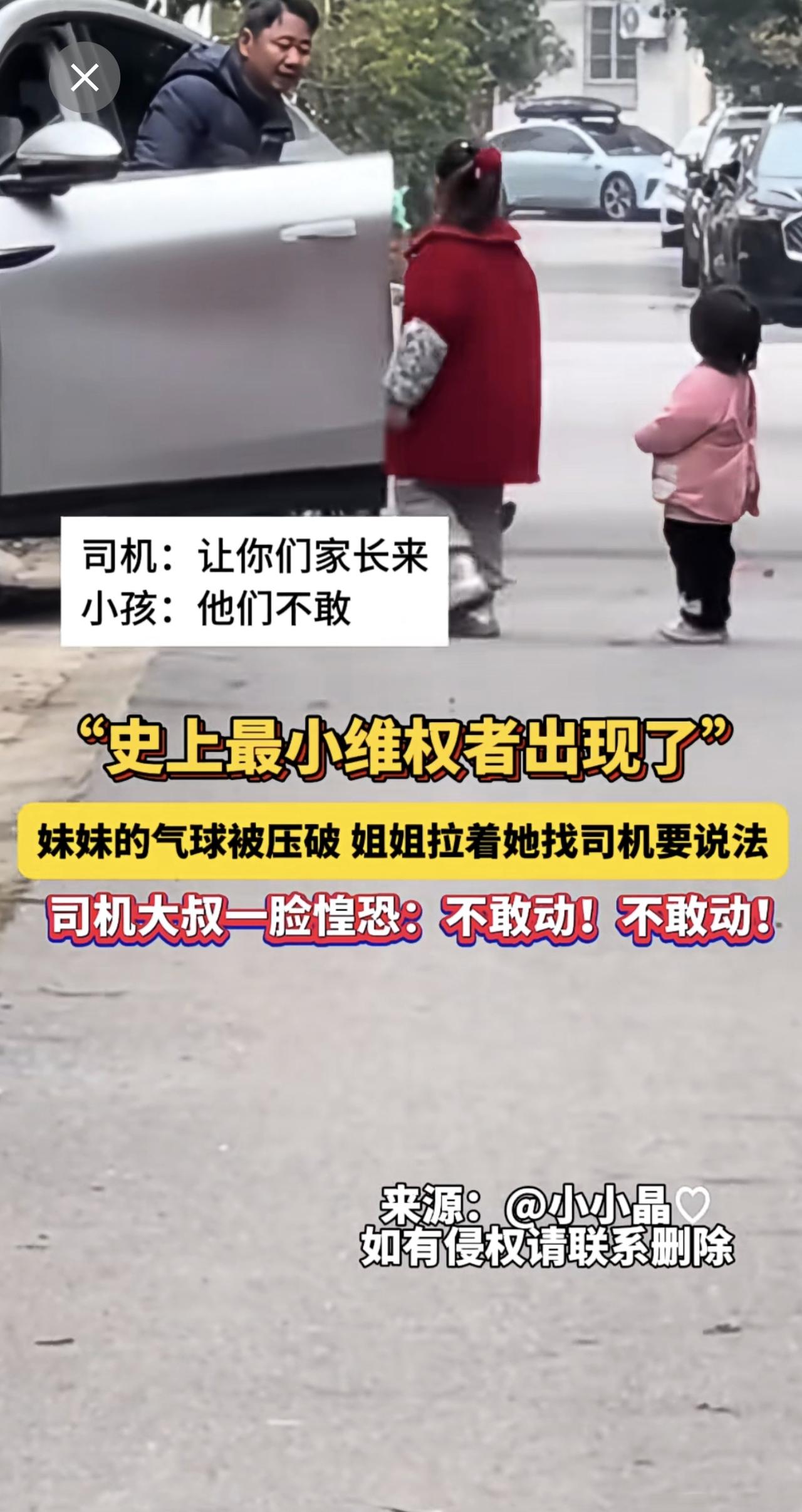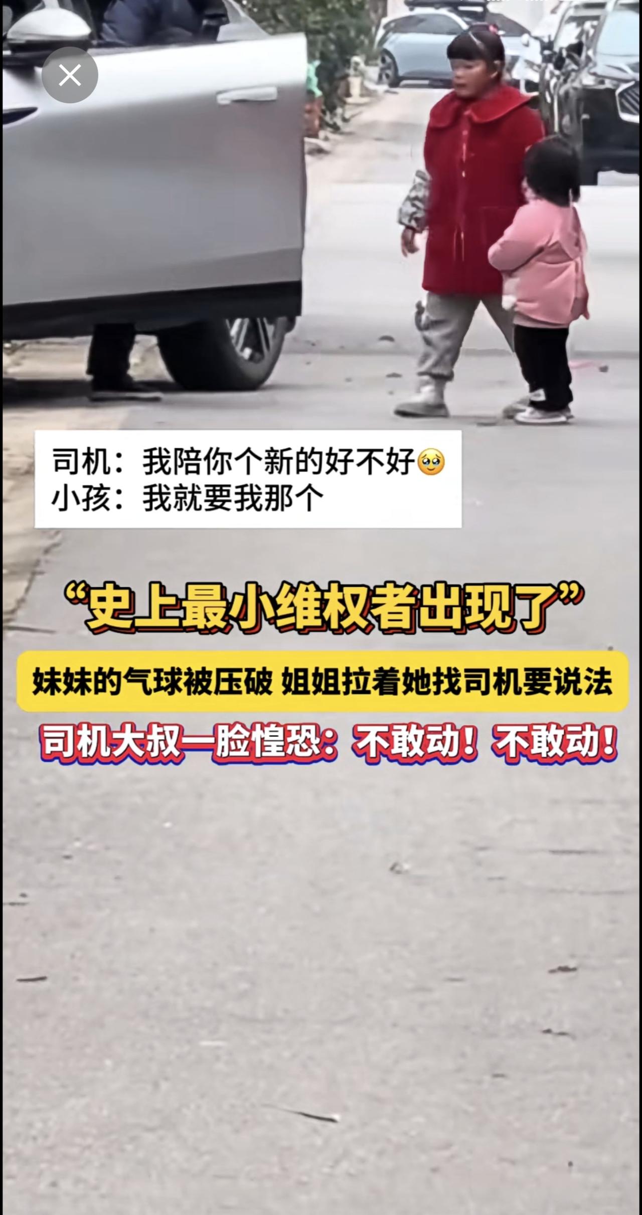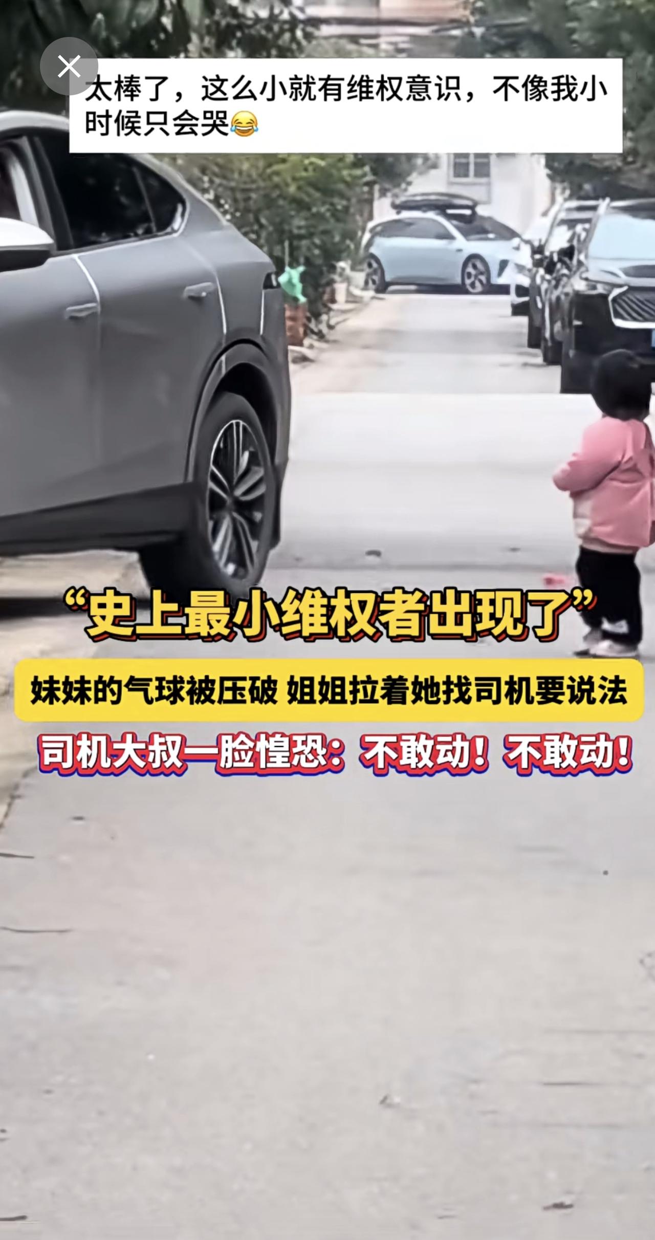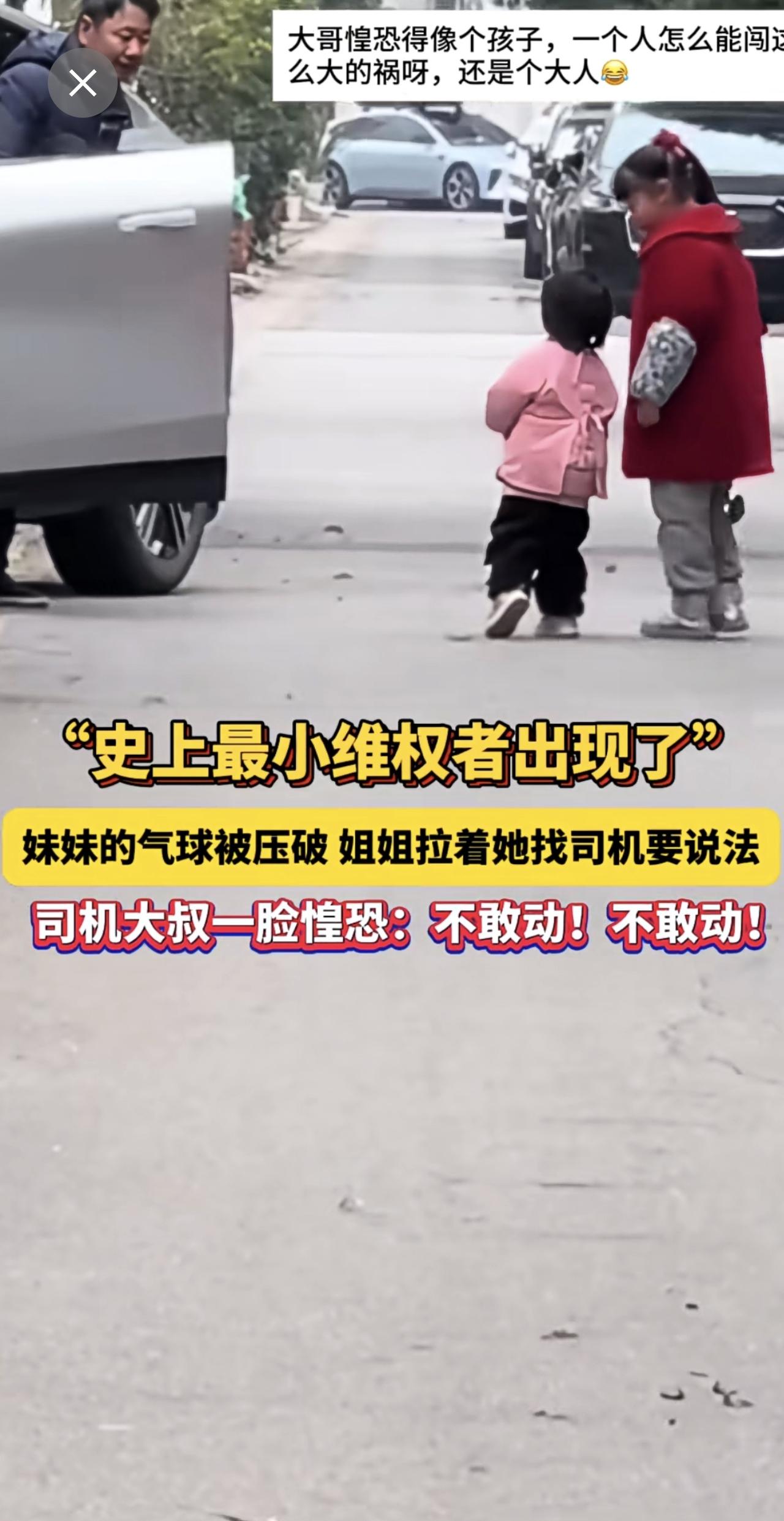 “史上最小维权者出现了”!妹妹的气球被压破,姐姐拉着她找司机要说法!司机大叔一脸惶恐:不敢动!不敢动!