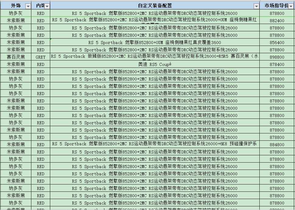 目前奥迪RS5价格还行不选DRC的落地65左右选DRC的落地67左右可以直落全国