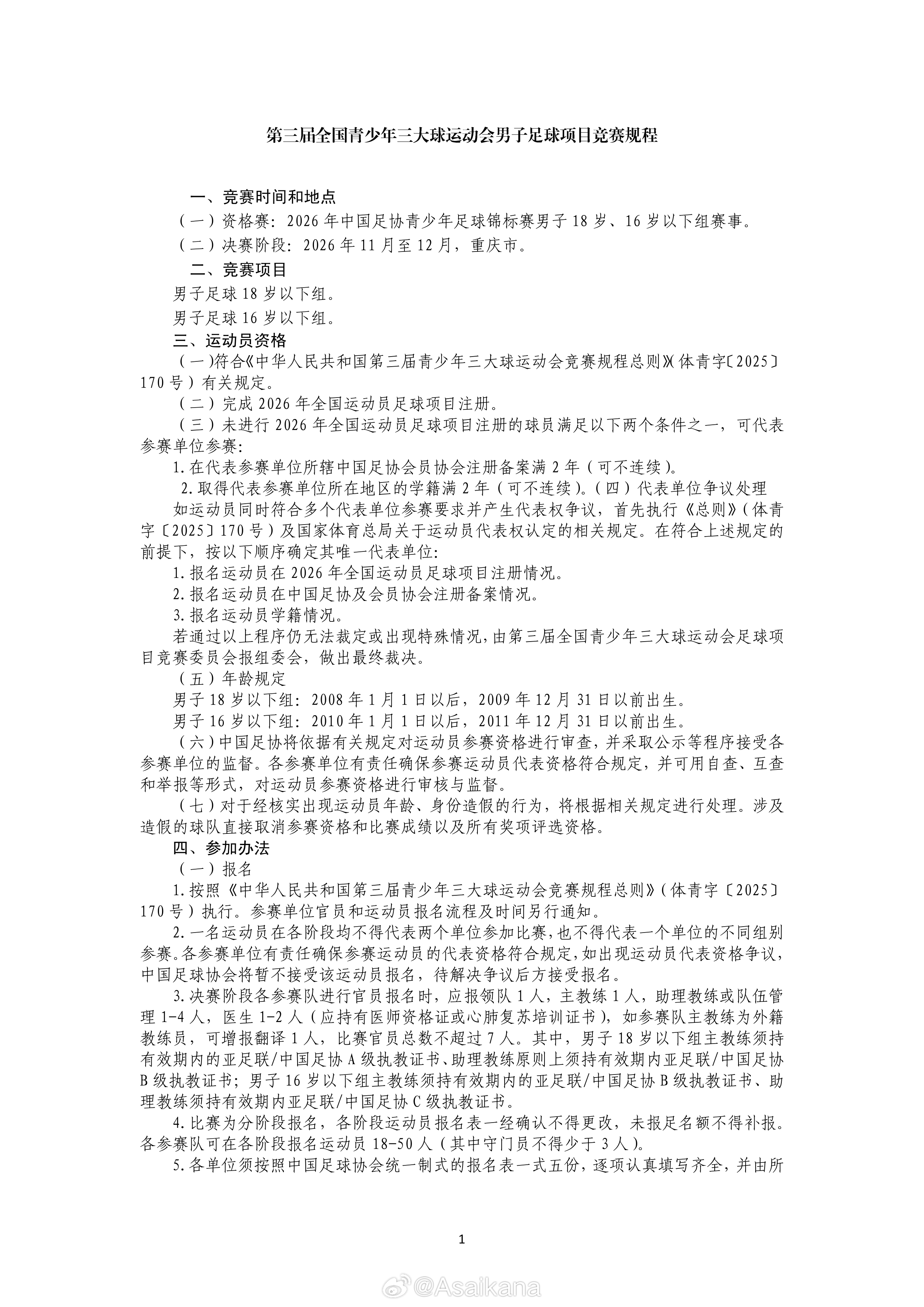 第三届全国青少年三大球运动会足球项目竞赛规程已在体育总局官网正式发布(链接:网页链接 )男子足球项目规程如图