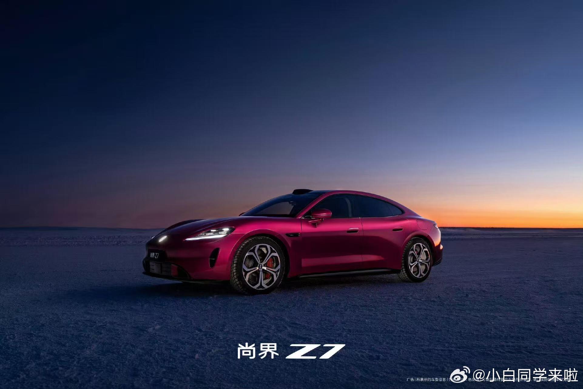 尚界 Z7 电光紫粉雪地官图来了。
