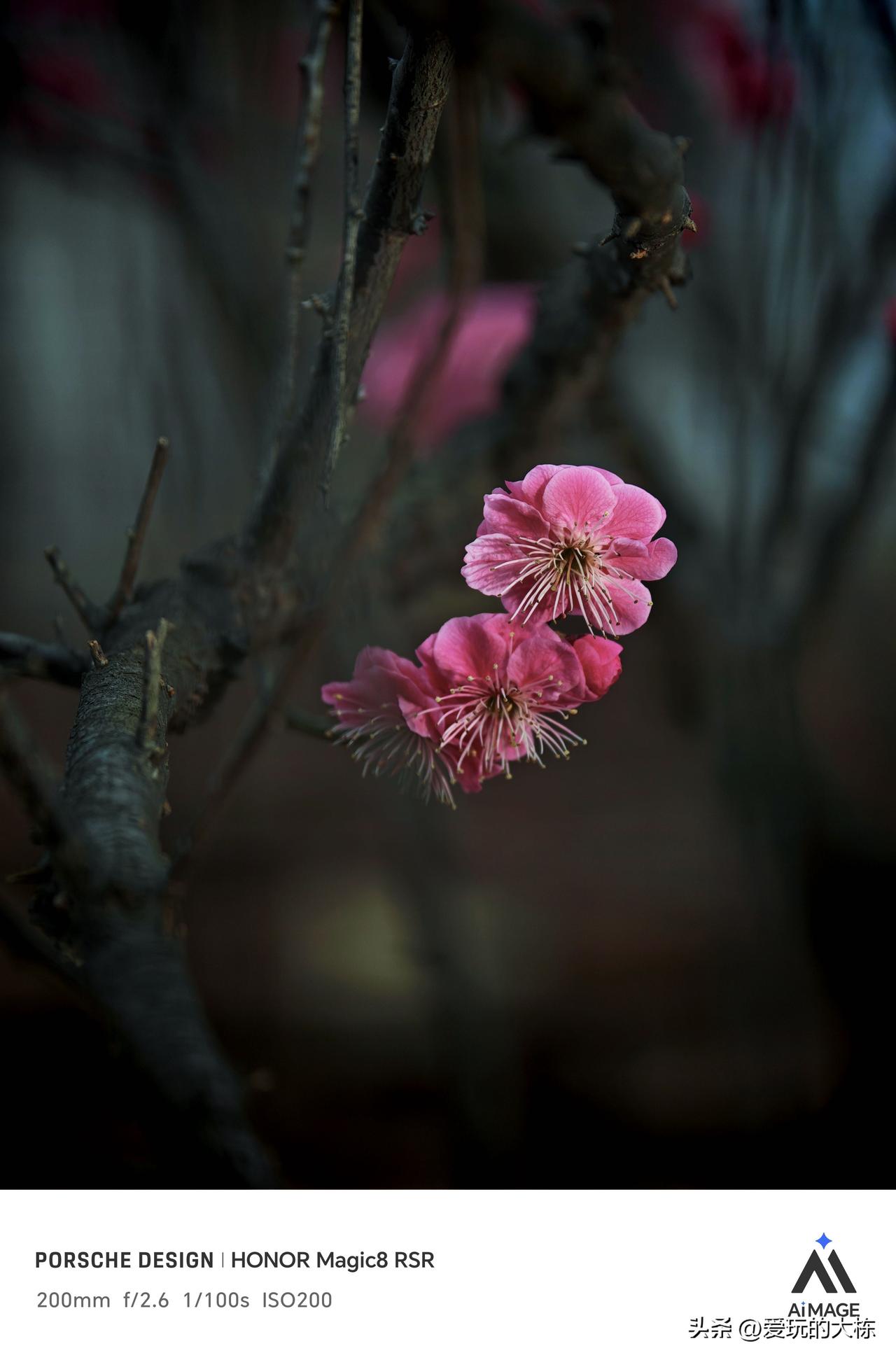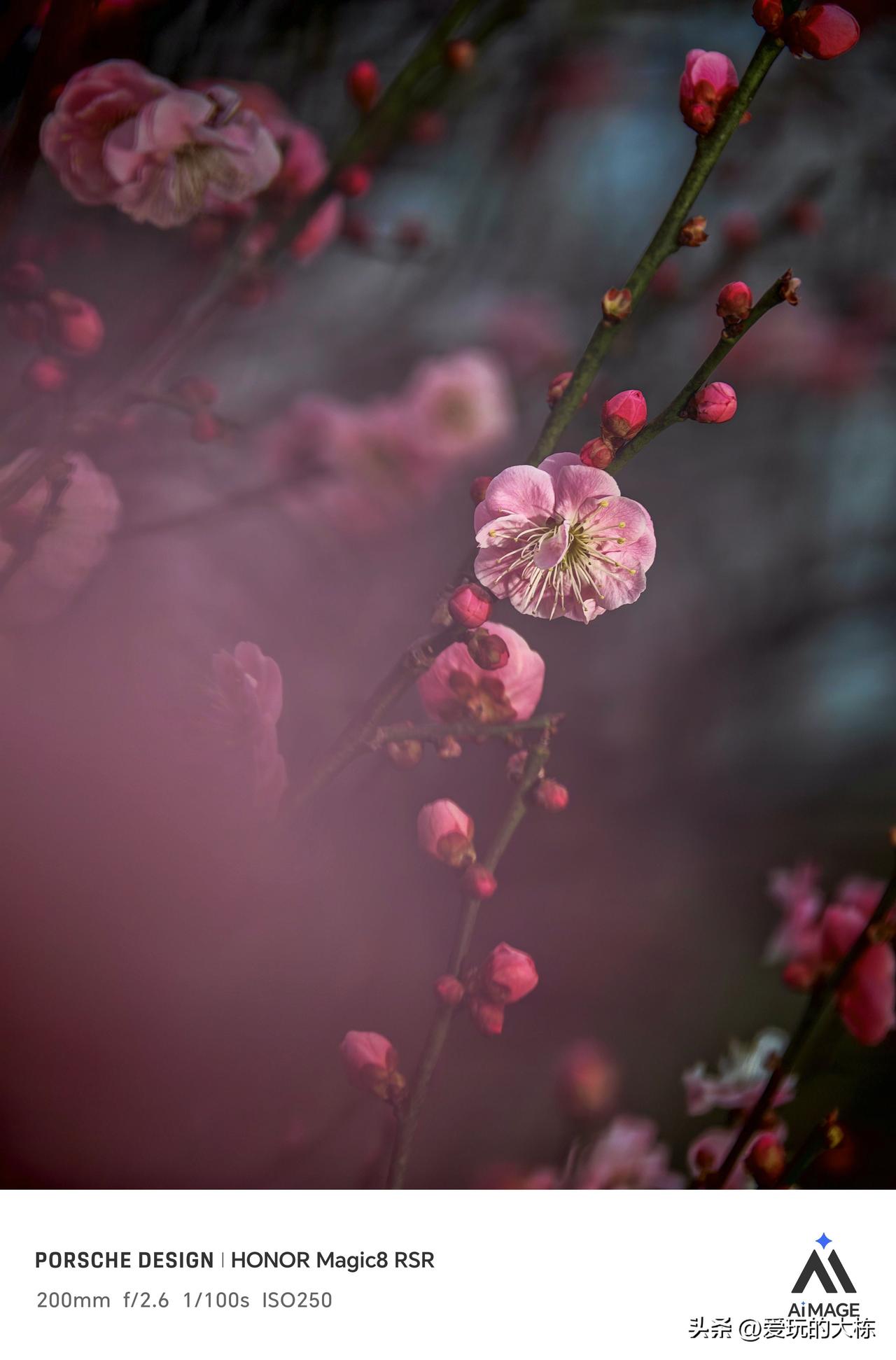 梅花开了,荣耀Magic 8保时捷版搭配摄影师套装,用3.3倍倍增镜直出原片,瞧