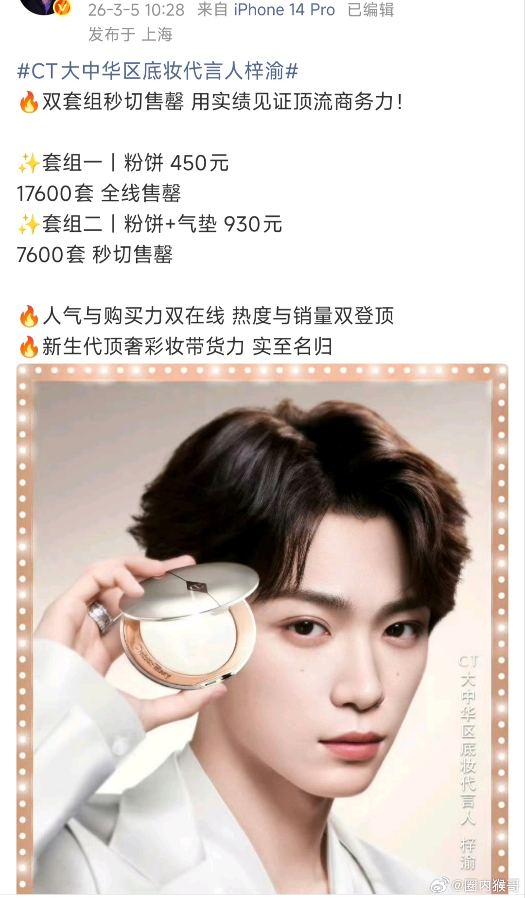 梓渝 CT梓渝这带货能力号召力和yuni的购买力是不是太过于变态了啊?CT专链双套组全都秒售罄1500w的销售额,太可怕了