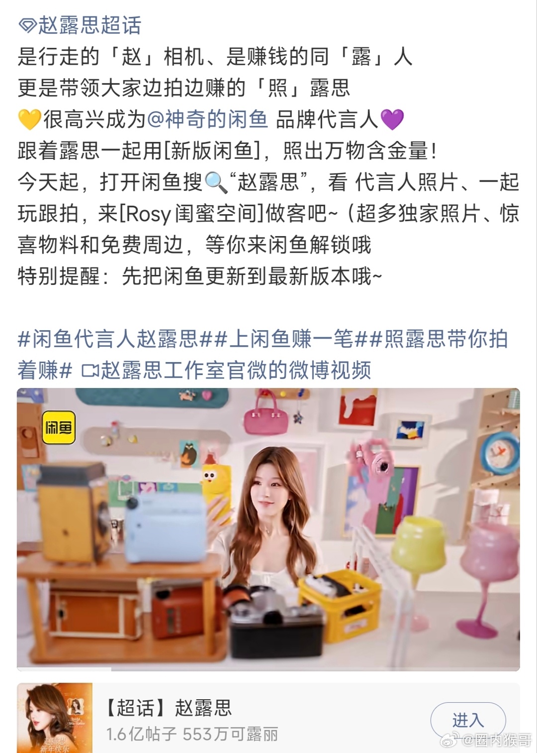 闲鱼正式官宣赵露思成为其品牌代言人,各地超大地广都已经开铺,排面简直是震撼,甚至