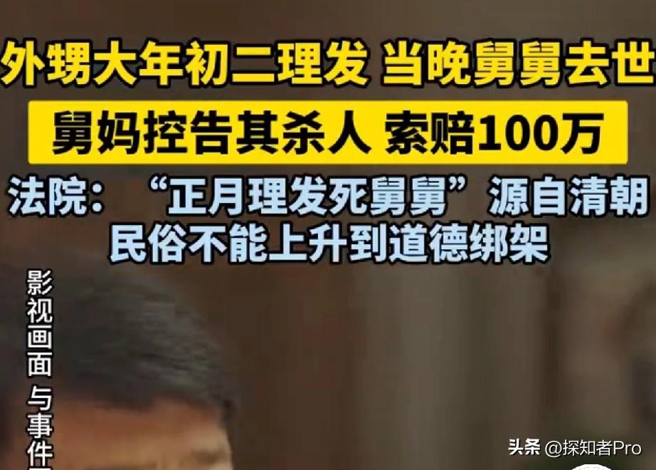 外甥大年初二去理发💇🏻舅舅当晚就意外身亡 被舅妈告上法庭,索赔100万 法院判了→ 意外与外甥无关,驳回舅妈全部请求! 📝这是上海总工会在3月2号公布的一则案例: 正月初二,刘兵(化名)因为发型邋遢,被舅舅一通骂,便去理发店剪了头发。 好巧不巧,就在当晚,舅舅酒后骑车,发生了意外身亡,第二天刘兵去参加葬礼吊唁。 舅妈发现刘兵刚理的头发💇🏻,认为舅舅出意外,是因为“正月理发死舅舅”的说法。两人发生了争执,舅妈便把刘兵告上法庭。 最后的结果,就像开头说的那样: 舅舅的意外身亡与外甥理发无关,驳回舅妈全部诉讼请求! ———————————————————— 这案例,也告诉我们: 1.民间风俗不能上升为道德绑架 “正月理发死舅舅”说法起源于清朝,汉人为怀念明朝旧制,就在正月不剃头以示“思旧”。 后来“思旧”被传成谐音“死舅”,才演变成今天这个说法。 2.民间风俗不能当令箭 风俗归风俗,法律归法律,不能拿没有科学依据的风俗当尚方宝剑。 3.也给咱们提个醒: 风俗忌讳的事,还是能避开就避开吧,省得惹一身骚,有理说不清!毕竟风俗迷信这事儿,不信归不信,人情世故还是得讲究。 取材:腾讯新闻;声明:图片来源于网络,与本案无关
