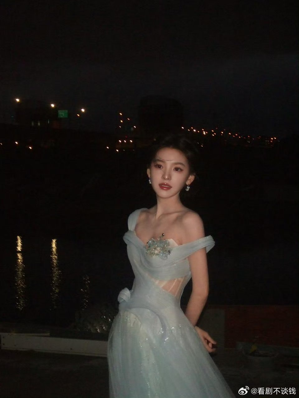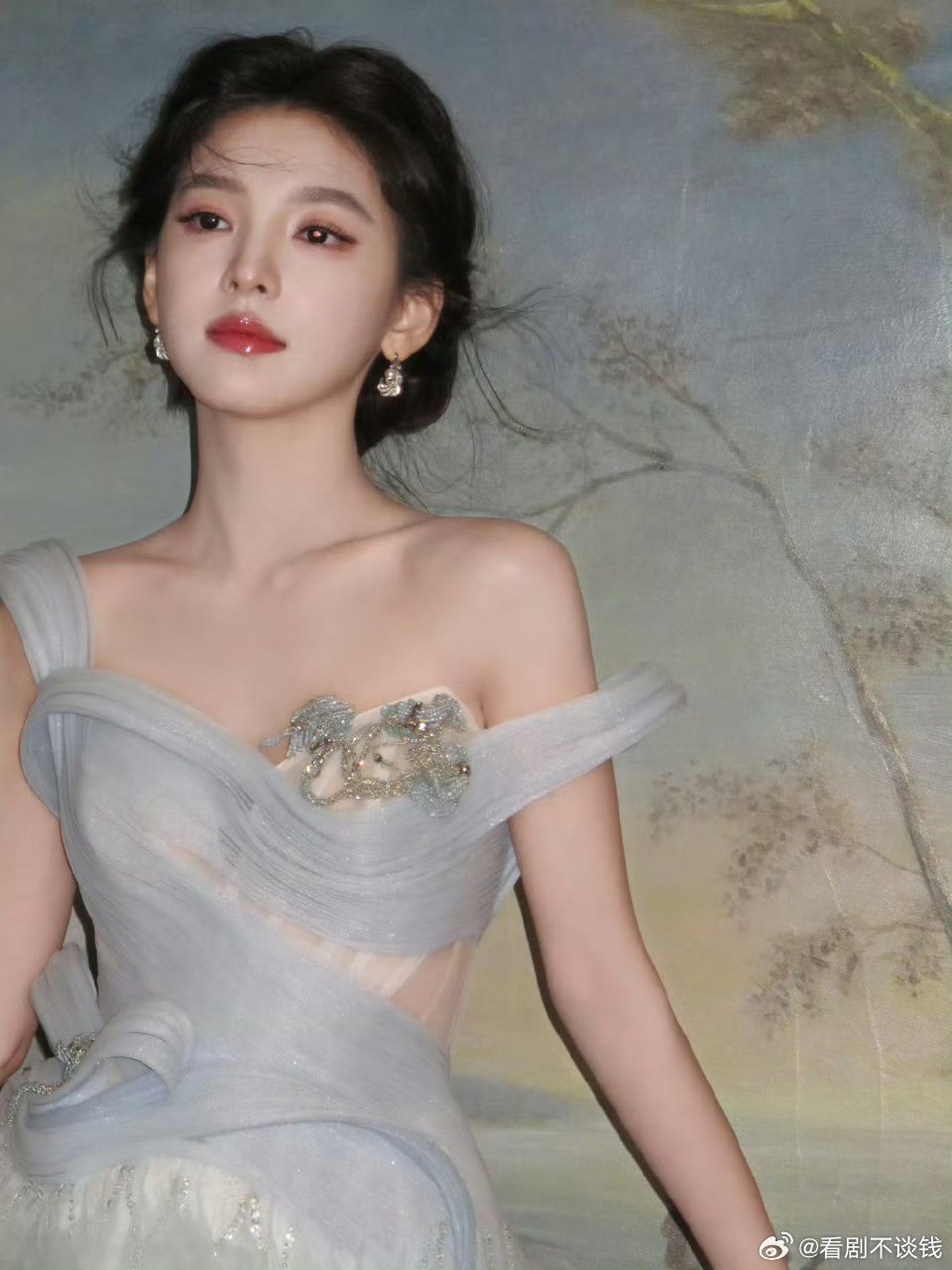 章若楠蓝色梦幻灵动公主风章若楠亮相直播现场,身着秋冬系列的淡蓝色薄纱礼裙,搭配超