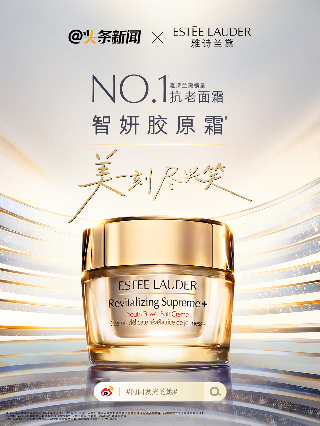 关注雅诗兰黛智妍胶原霜 、闪闪发光的她,晒出你的尽兴笑容(场景不限,职场、旅行、居家均可),并在文案中分享你尽兴笑的高光时刻。即刻参与,还有机会获得雅诗兰黛「胶原霜」正装一份~】