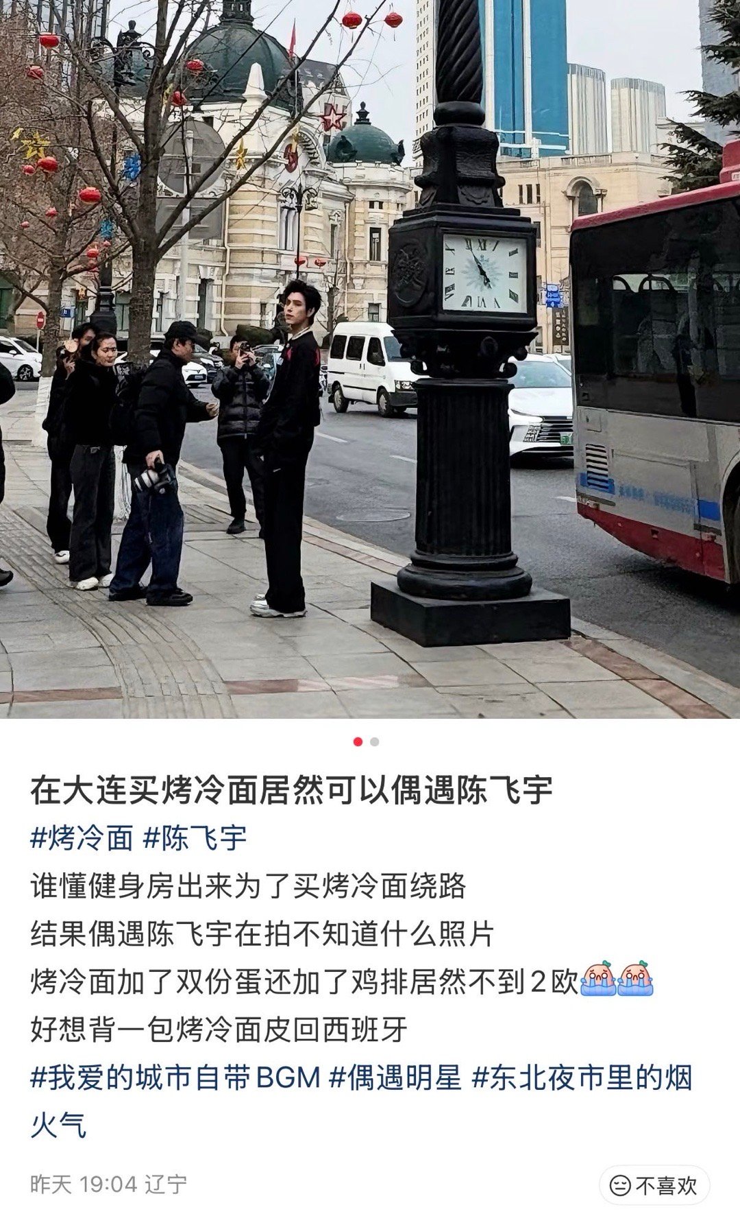 买烤冷面偶遇陈飞宇 别人买烤冷面是为了吃,这个网友买烤冷面是为了偶遇陈飞宇。虽然她是真去买吃的,但这运气确实让人酸了。