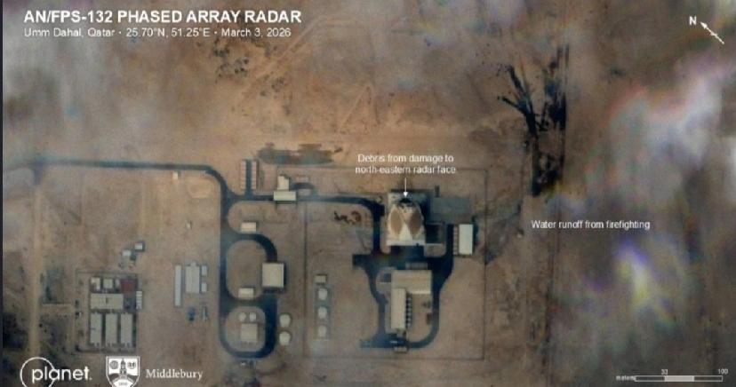 美国与伊朗的冲突持续,卫星影像公司Planet Labs最新公布的画面显示,美军驻中东多处关键军事设施在伊朗的报复攻击中遭受重创。据估计,美军在开战短短4天内,损失的军事资产已接近20亿美元(约146亿元人民币)。 其中,位于卡塔尔、价值高达11亿美元的「铺路爪」长程预警雷达出现明显受损,或严重削弱美军在该区的导弹防御预警能力。 卫星影像显示,位于卡塔尔豪尔(Al-Khor)附近的AN/FPS-132「铺路爪」早期预警雷达站,出现明显弹痕、碎片及消防作业痕迹。该系统侦测距离达5000公里,是美军监控区域导弹威胁的核心设备。 土耳其媒体分析,此系统造价约11亿美元,其受损将大幅缩短美军对弹道导弹袭击的反应时间,对驻中东美军的安全构成直接威胁。 卫星影像显示,位于卡塔尔附近的「铺路爪」早期预警雷达站明显受损。 萨德系统组件疑遭精准摧毁 除预警雷达外,部署于阿拉伯联合大公国(UAE)的AN/TPY-2 雷达系统亦疑似被击中,该系统是「萨德」(THAAD)防御体系的「眼睛」,单价约5亿美元。伊朗伊斯兰革命卫队(IRGC)宣称,已成功摧毁第二套美国萨德系统的核心部件。 卫星画面佐证部分设施受损,若防空雷达持续遭瘫痪,伊朗导弹后续将获得更大的打击空间。 巴林第五舰队通讯设备同受损 科威特亦传出防空误击事件,3架美军F-15E「攻击鹰」战机遭友军击落,损失金额约2.8亿美元,所幸6名机组人员全数生还。此外,巴林第五舰队总部附近的AN/GSC-52B高容量军事卫星通讯终端亦传出遭破坏,损失约2000万美元。