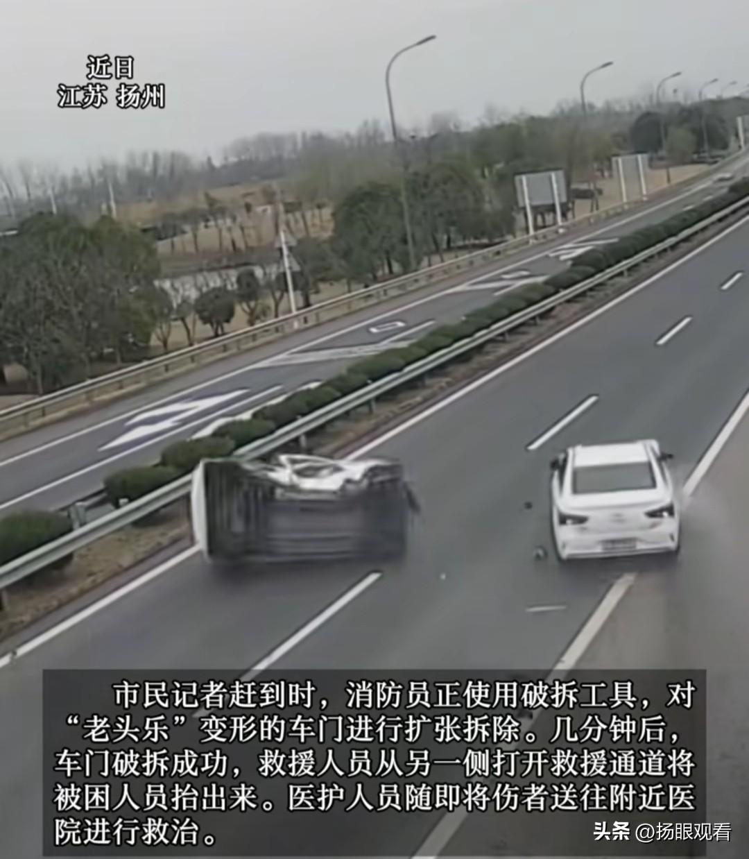 惊心!老头乐突然窜出 轿车避让不及直接撞翻⚠️ 江苏扬州又一起惊心事故! 611省道邗江公道镇附近 一辆老头乐违规变道、突然从路口窜出 正常行驶的轿车根本来不及避让 直接狠狠相撞! 老头乐当场侧翻、车身严重变形 后排乘客被困车内无法动弹 消防紧急到场破拆车门 才将伤者救出送医 轿车司机:正常直行,对方突然冲出来 完全躲不开! 真的太危险了! 老头乐无牌无证、安全系数几乎为零 随意变道、闯红灯、闯禁区 一旦出事,害人又害己 生命不是儿戏 拒绝违规代步车,平安出行才是第一位🙏