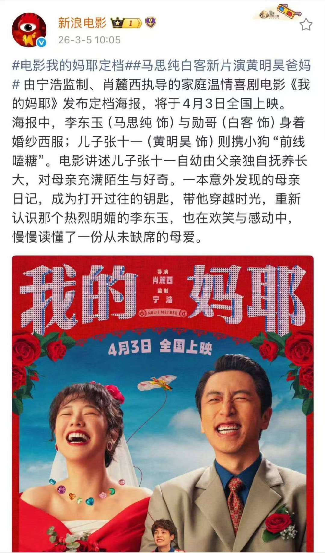 马思纯说东玉日记被偷看很生气马思纯宣传电影我的妈耶 谁偷看了李东玉的日记?马思纯表示很生气! 马思纯×白客×黄明昊,4月3日清明档全国上映,一起解锁妈妈的中二青春,爆笑又治愈,狠狠期待住了!