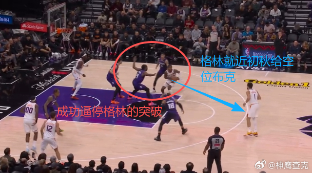 123456杰伦格林持球突破直杀篮下,站Nail位伺机协防的阿丘瓦见状立即上前封堵突破路线,格林突破被阿丘瓦协防逼停后就近出球给弧顶空位的布克,威少预判其传球意图后迅速上前单手完成抄截。随即持球推动反击,阿丘瓦无球跟进快攻,中路长驱直入,接威少传球残暴单臂战斧劈扣,直接隔扣布克。