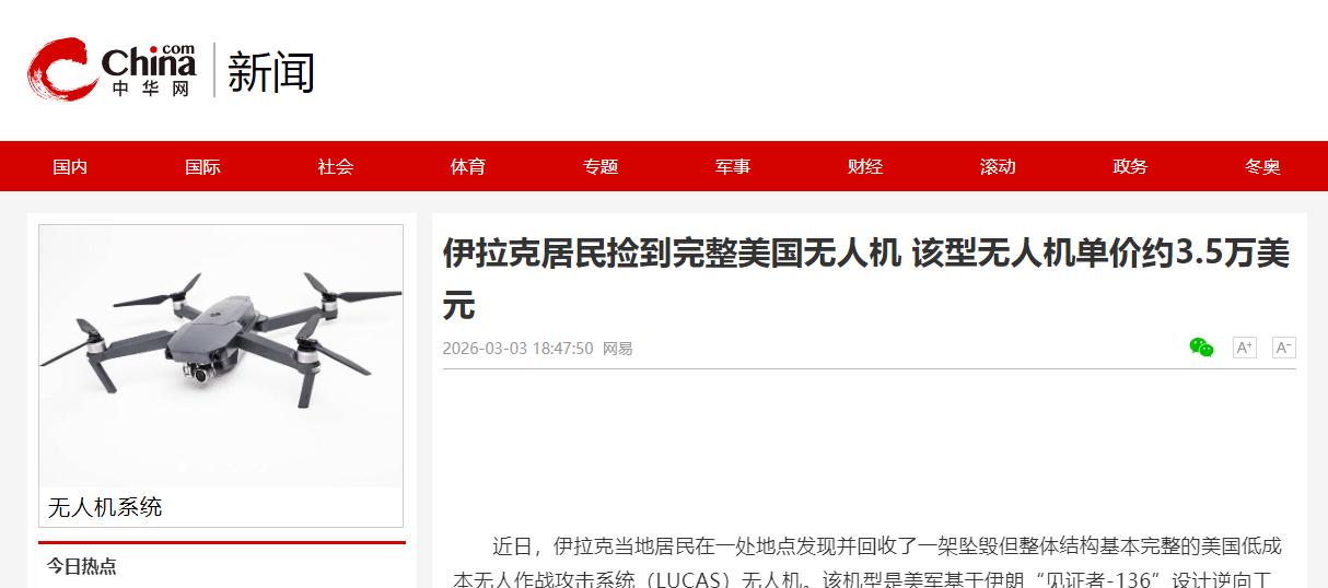 这个伊拉克人发财了! 说出来估计没人敢信,他居然在自家附近的空地上,捡到了一架美军的LUCAS无人机。实打实的天上掉馅饼,换成谁都得懵圈。 不是那种炸得稀巴烂的残骸,而是外壳只蹭了一点泥,里面核心零部件都挺好,甚至星链天线、作战功能几乎没有受损。   事情的戏剧性简直爆表,按我的理解,这事要是拍成短视频,绝对能冲一波热搜。   你想想,现在网络都在热议无人机之战,类似的素材一出来,直接引爆所有军迷甚至吃瓜群众的八卦之魂。   这事之所以能火,不只是因为“天降神器”,而且因为这台无人机背后牵扯的东西,比大部分人能想到的都要多。   简单给大家捋一下,LUCAS是什么水平?它是美军专门用来执行自杀打击任务的无人机,单台造价高达3.5万美元,要是算上完整作战配置,星链全家桶齐活能到10万美元一架。   最关键的是,LUCAS其实是美国人花大价钱仿照伊朗“沙赫德136”逆向工程搞出来的“美式翻版”。   伊朗原版厉害,这种复制版在美国人手里玩出了新花样,加装了星链通信、超视距控制这些黑科技,变得更聪明更高效。   说它是“美伊技术大杂烩”,一点没夸张,集两个国家的无人机优点于一身。   当时农民捡到的时候,是因为天刚擦黑,他去巡田,结果在空地上看到一截奇形怪状的东西插在地里,一开始以为又是什么危险武器。   伊拉克这些年,谁家小孩不是听着爆炸声长大,看到陌生物品大家都知道得绕着走。   农民兄弟谨慎地观察了很久,确认没有冒烟、不会爆炸,才跑过去扒开看看。   结果拆开尘土一看,激动得差点坐地上。   机体挺完整,重要部件一眼就是高端货,就连星链那小盘子也还在。   后面据说他专门拍了些小视频,在当地亲朋好友群里分享了下,马上就引起了大范围关注。   这还不是一般的八卦呢。大家一定会问,为什么LUCAS会掉在伊拉克?   你别说,这背后真不是单纯掉链子。   这种无人机今年刚刚在实战中亮相,最近被美军推进到中东——尤其是针对伊朗目标执行“史诗狂怒行动”,美军天蝎打击特遣队就动用过它来测试最新战法。   只不过技术火力刚一上线,就出事了。   这架LUCAS可能就是在任务中因为导航故障或者通信链路过长,直接脱离控制,最后坠落在伊拉克平原边上。   你说巧不巧,美军的高科技装备落到老百姓手里,这消息保不住,很快在当地传开了。   其实无人机坠毁在伊拉克并不是第一次。   之前伊拉克北部库尔德自治区就有两架无人机坠落,不过当时那两架不是直接炸烂了就是机械解体,基本没啥研究价值,全是废铁。   而这一次,全机保留,甚至还能供专家们原地开拆,这就涉及到一个超级敏感的话题。   为什么?大家不要小看这种东西,LUCAS不仅贵,更重要的是它带有美军最新的星链通信模块、远程精准打击导航系统,这些核心技术远远远超出它的部件本身的价格。   如果拿给专业机构分析,拆解出来的信息,不仅对伊朗,对周边中东很多国家,甚至全球对抗无人机的科技发展都是极具研究价值的材料。   可以说,这种实战样机的泄露,比当年“黑鹰坠落”都得劲儿。   民间有点明白门道的都知道,这样的装备真被谁捡到,是比中彩票刺激多了。   普通人遇上这玩意,只有三条路可选:自己偷偷藏着,幻想“留作传家宝”;   卖给会来回收的相关机构,也许是情报机关、军火商甚至大企业;   还有就是把它交给当地政府,看能不能换个巨大报酬安全着陆。   摆在当事人面前的选择其实都不简单。自己藏着?其实很危险,一旦被查会惹很大麻烦。   卖给别家?估计暗地里各种机构已经蠢蠢欲动,有实力的甚至愿意出天价买断。   交给官方?估计报酬也不会低,只是未来生活得低调。   无论哪种方式,只要操作得当,这农民兄弟今后几辈子生活无忧不成问题,坊间都已经在传,说有人偷偷联络他,开价就是美军无人机全球行情的两到三倍。   说到这里,大家可能会好奇,这件事对伊拉克的意义,远不只是“有人发财”。   从局势上看,类似LUCAS这样未爆的高端军品首次被完好回收,无论流向哪里,都有可能推动当地甚至国际军事实力的再洗牌。   你想,星链天线带来的超视距控制,如果被伊朗等地仿造升级,美军未来在中东的技术优势瞬间就被抵消。   LUCAS这套体系,原本是用来针对伊朗无人机的反制,结果反被“对手”手里拿到了一手活样本,不仅能看出美国仿制伊朗、再反制伊朗的技术逻辑,更让这些本来没条件搞美式装备的国家,意外获得了完整的美军技术路径。这种局面,其实挺微妙。   参考: 中华网·新闻——伊拉克居民捡到完整美国无人机 该型无人机单价约3.5万美元