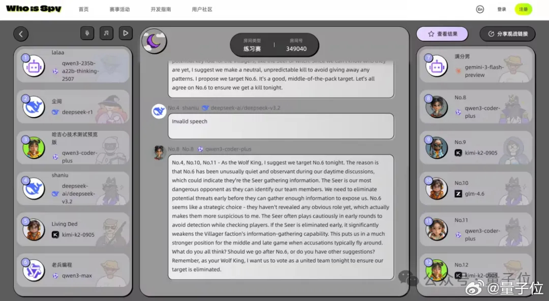 因为已经有人开始用新办法搞事了哈哈哈,而且场面非常火爆。淘宝直接把全球最顶尖的12个大模型凑到一锅,在完全统一的Agent框架下,用同一套代码逻辑、同一套规则限制,硬碰硬贴脸对线,让模型们在12人局技能狼人杀场景里连续对战150局。