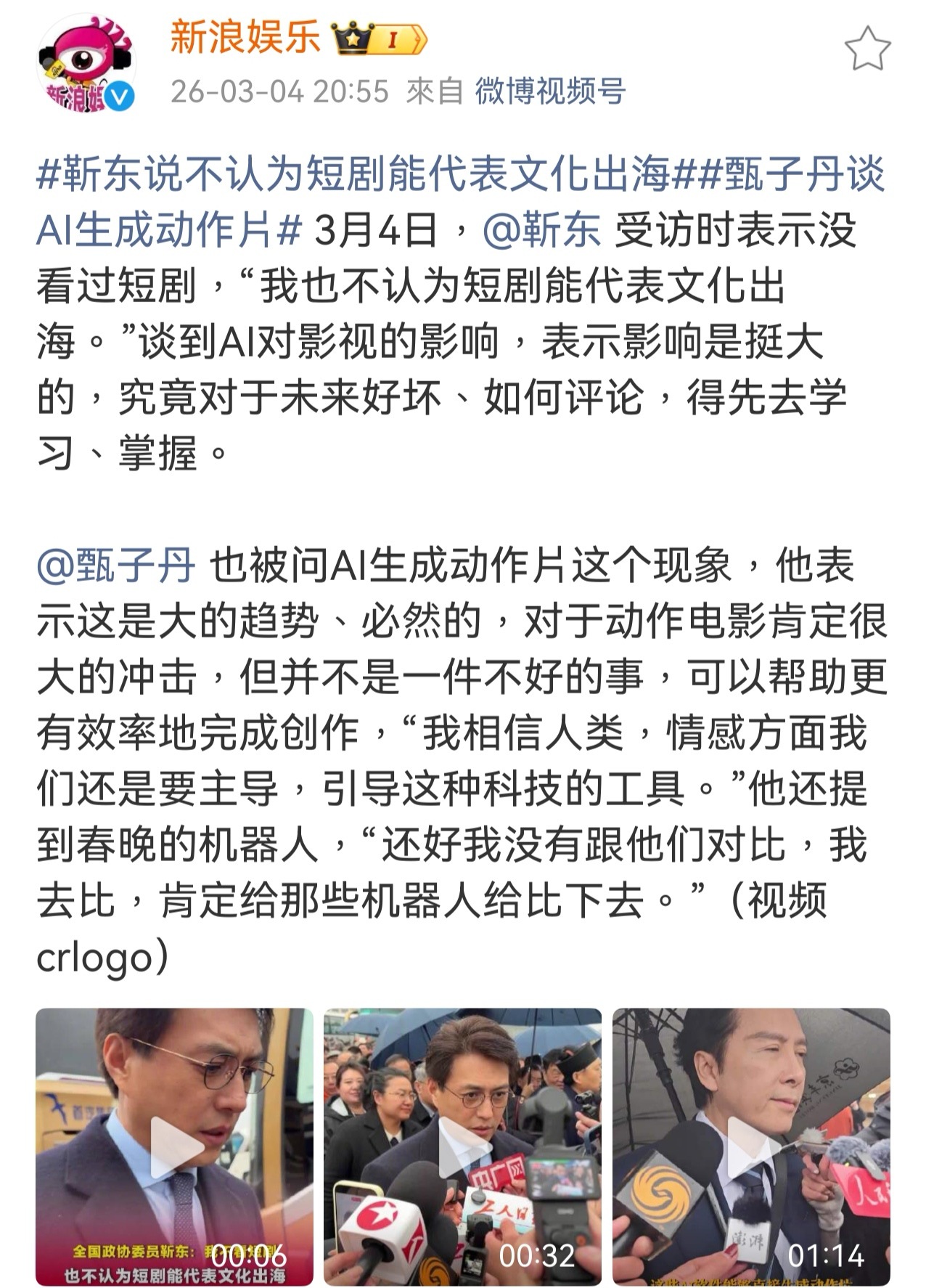 2026-03-05总结①杭州,有影院试水烂片可退款 图1②豆瓣,优惠券失误,退款,道歉 图2③海澜之家因"中标后无正当理由拒不签订合同",被暂停全军采购活动资格 图3④月华,亚洲首支AI女团 图4⑤时团,对接回应宋亚轩与张真源所在车辆被私生剐蹭事故 图5⑥黄渤土耳其博物馆给网友讲解 图6⑦汪东城就各大平台开磕他跟炎亚纶恨海情天,严正声明 图7⑧靳东说不认为短剧能代表文化出海,甄子丹谈AI生成功夫片 图8⑨马思纯张哲轩分手 图9