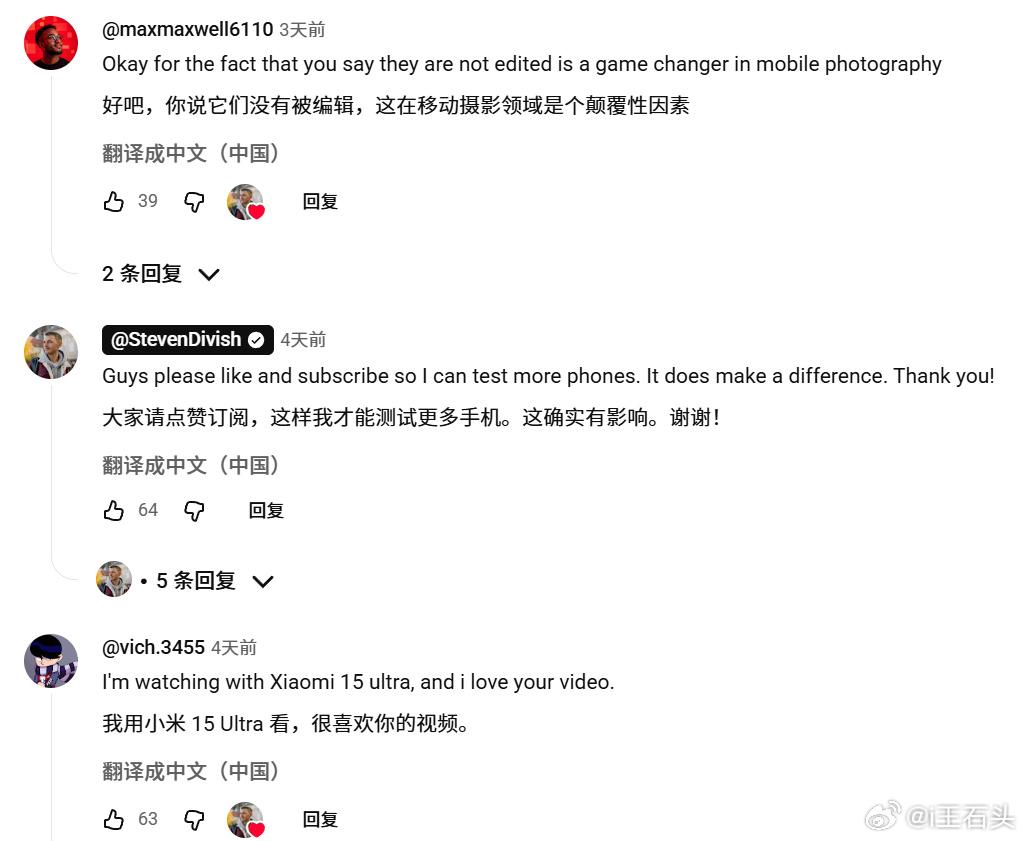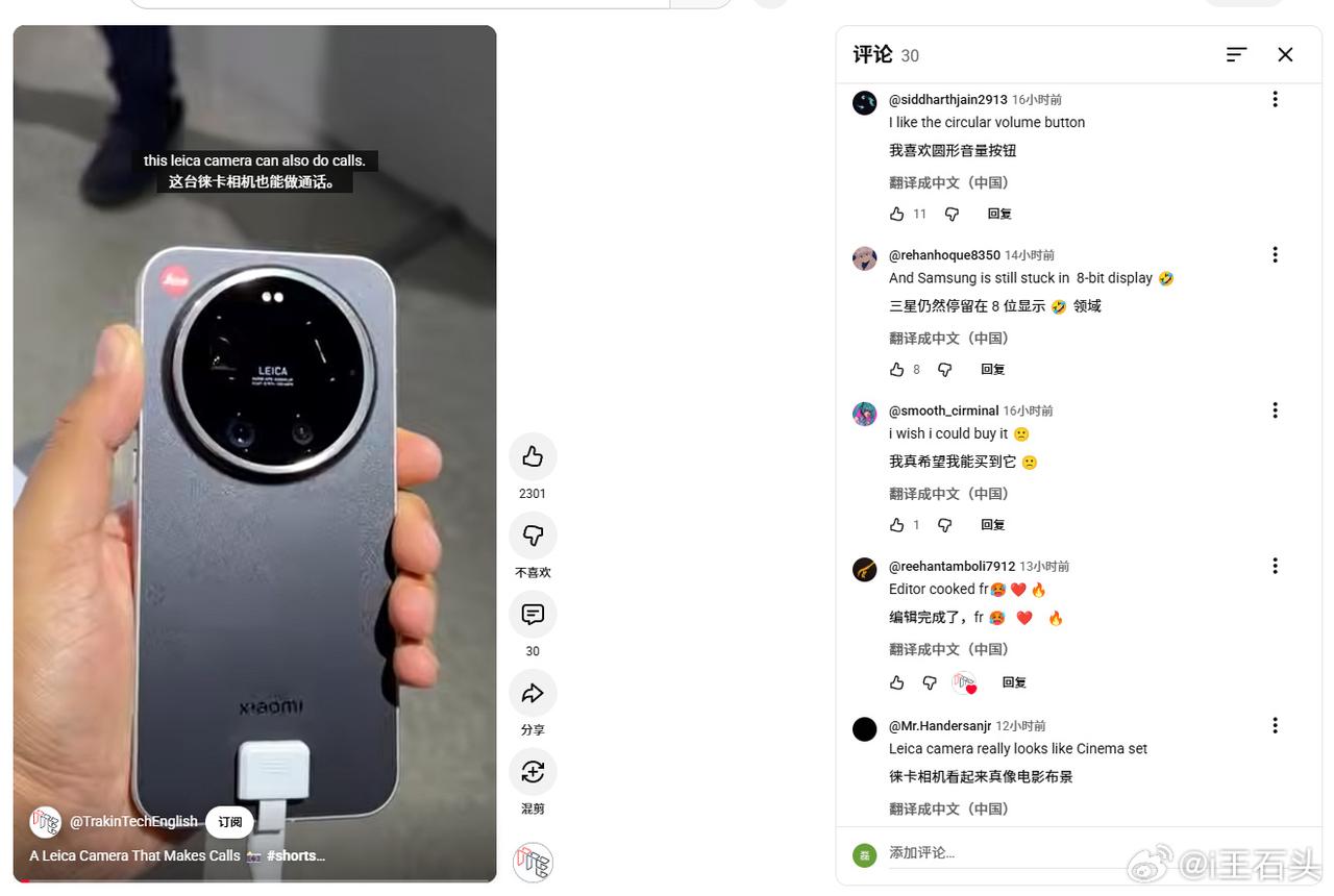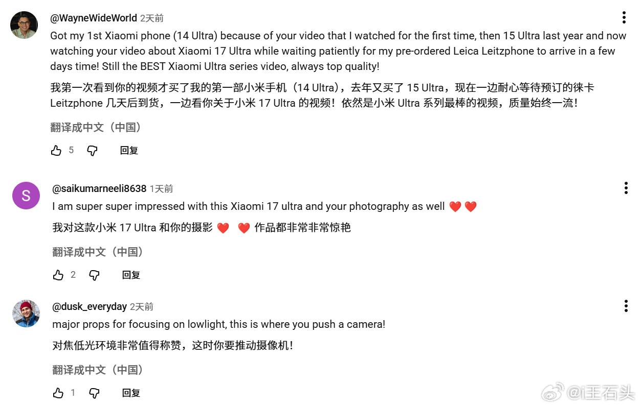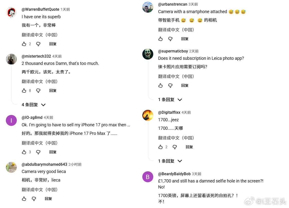 海外的Leitzphone,也就是小米17 Ultra徕卡版。 记得两个月前上市时,喷子们挺多的。。。 现在看看油管上的评论,这是我随便点开的几个视频评论。 在国际市场,小米的口碑就这样,看来一时半会儿应该倒不了。