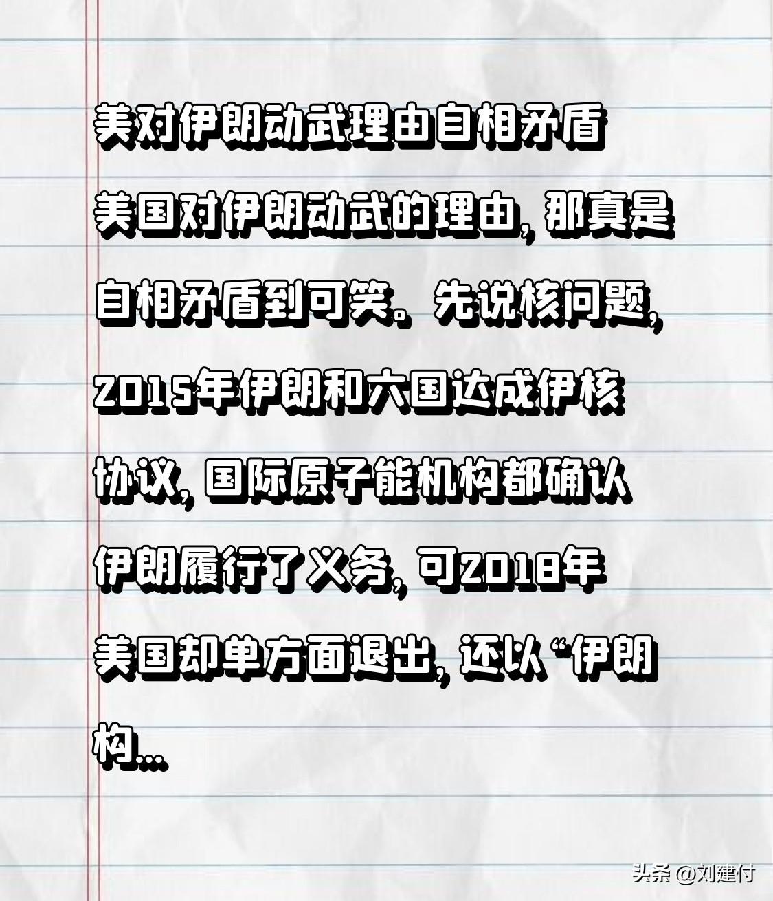 美对伊朗动武理由自相矛盾 美国对伊朗动武的理由,那真是自相矛盾到可笑。先说核问题,2015年伊朗和六国达成伊核协议,国际原子能机构都确认伊朗履行了义务,可2018年美国却单方面退出,还以“伊朗构成核威胁”重启制裁,这不是“无论你遵守与否,你都是威胁”吗? 在地区影响力方面,美国指责伊朗通过代理人破坏中东稳定,可自己在中东军事存在远超他国,还直接介入多国冲突。沙特联军在也门造成人道危机,美国支持;伊朗支持的力量行动,就被称“恐怖主义”。美国这双重标准玩得溜,其动武理由的自相矛盾,尽显霸权与虚伪。