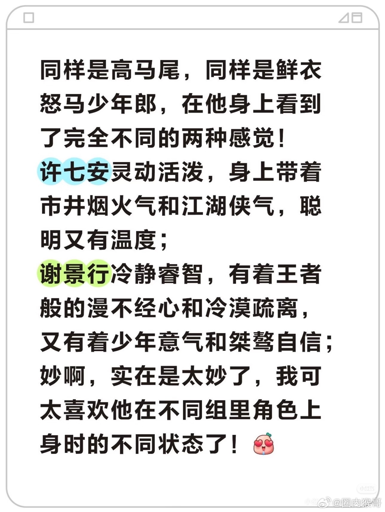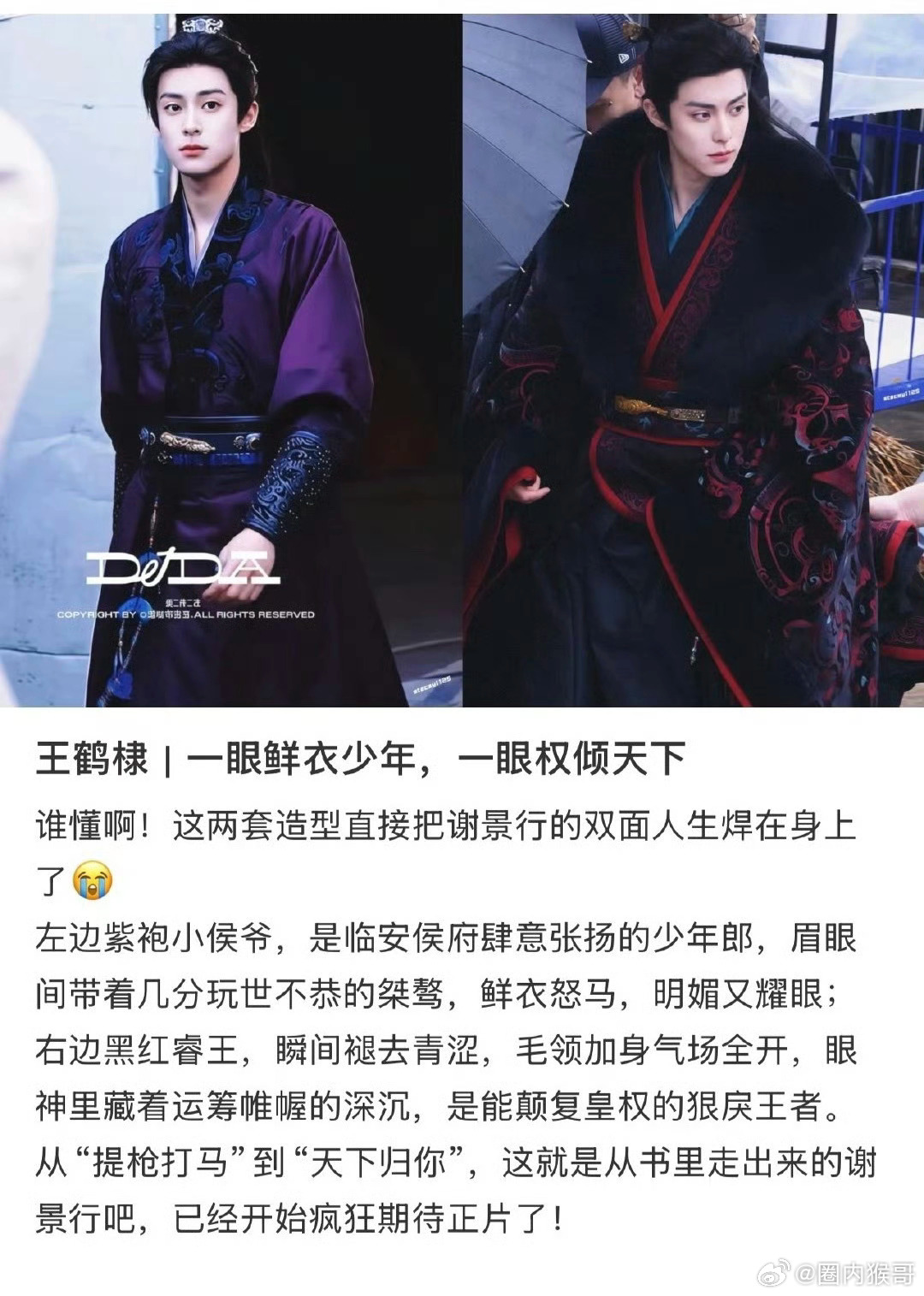 无论是从年龄还是外形、扮相亦或是知名度、剧集号召力、实绩,都找不出来比王鹤棣更适合演鲜衣怒马少年郎谢景行的,王鹤棣你真的很行!