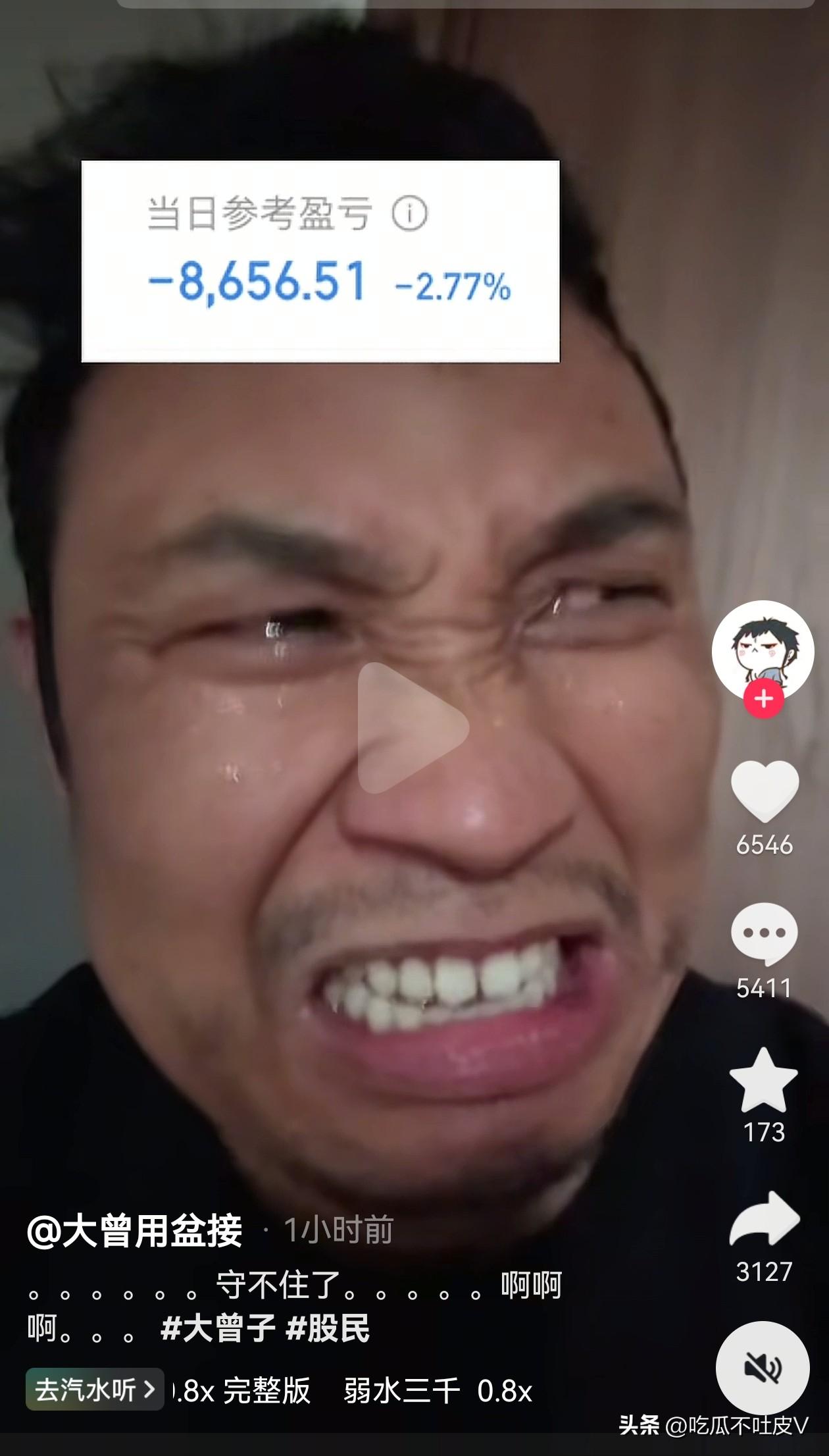 哈哈哈!3 月 5 日 A 股收盘啦! 虽然今天大盘红了 但是大曾子已经三连绿了,他 30 万的底线还是没有守住,今天的眼药水看来是滴的不少,就跟刚洗完脸一样,虽然不是真眼泪,但是看来确实是伤心了,事实证明前面笑的多嚣张,后面就哭的多伤心,哈哈哈! 大曾子已经开始怀疑人生了,过年从亲戚朋友那筹来的钱,他已经按耐不住要冲进去了,充值完他又满血复活了,离迈巴赫不远了[大笑]大曾子