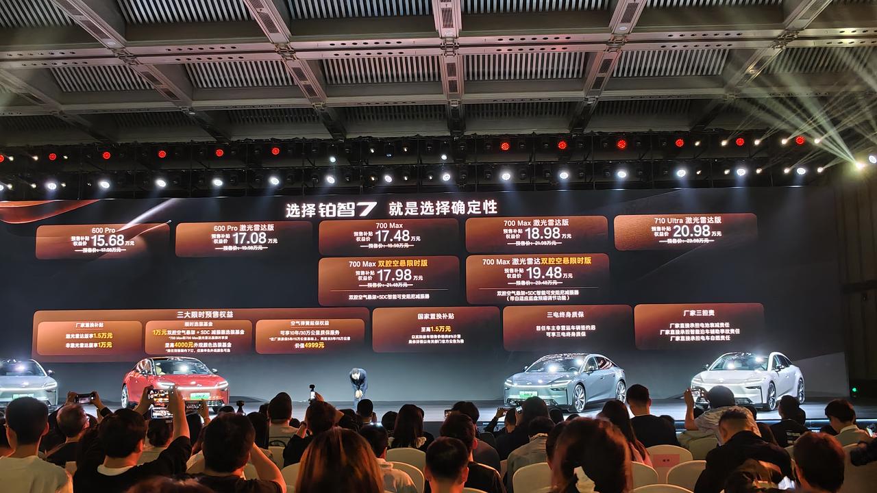 铂智 7 预售价格来了!补贴权益价 15.68-20.98 万元 700 Max 和 700 Max 激光雷达版,加 5000 元就能上双腔空悬 华为鸿蒙座舱、MoLA 大模型、小米车载生态… Buff 叠满,15 万买 D 级车的时代要来了?