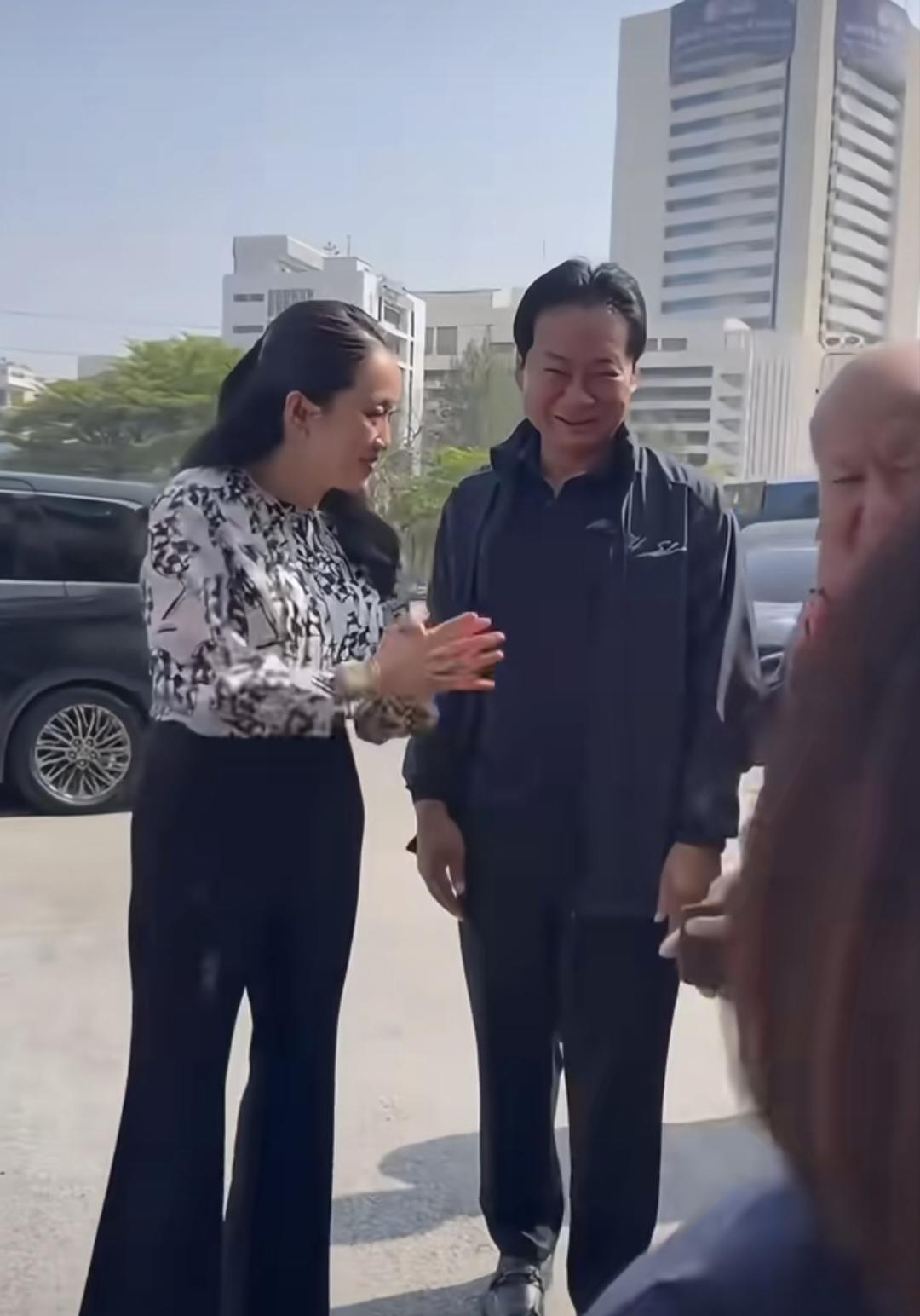 真是贴心小棉袄!3月5日,星期四,佩通坦携丈夫皮塔卡前往曼谷监狱对父亲他信进行了第45次探望。执着的探望,一周两次,已经坚持了快六个月了。 佩通坦身着花色衬衣,黑色裤腿裤,最吸睛的是她穿的高跟鞋子,黑白相间得条纹,跟她的衣服真的很搭配啊!她的着装永远是时尚的标杆。美丽,魅力,时尚,这就是佩通坦。 佩通坦这次探视,和父亲聊了近况,也说六个月时间太晚了漫长了,还有两个月父亲可以假释,家族人互相扶持鼓励。 佩通坦仍然很受欢迎的,监狱门口聚集可不少红衫军和粉丝,现场却井然有序。