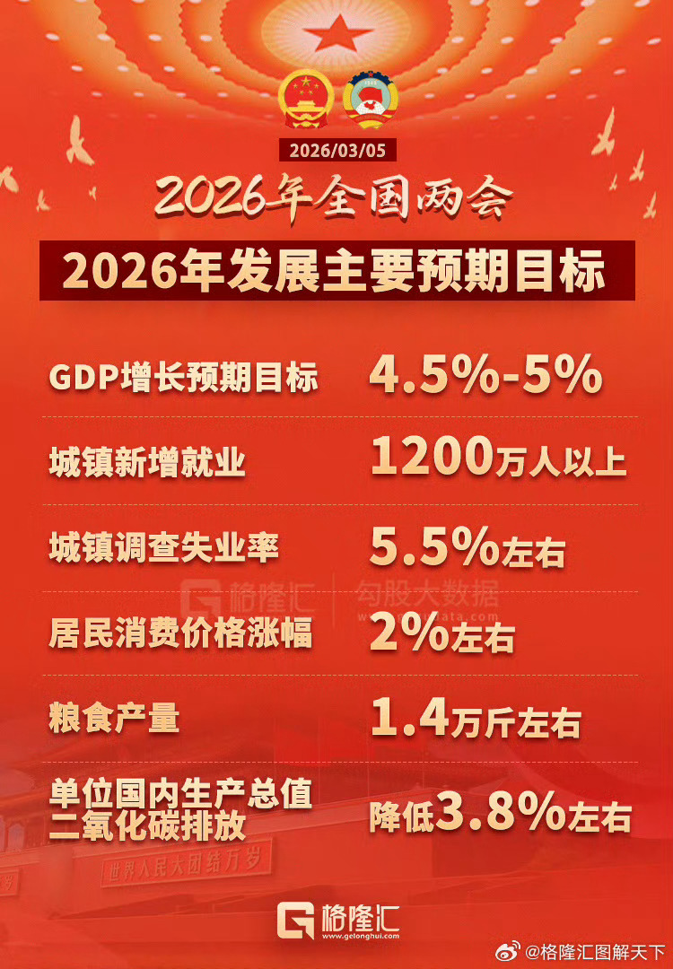 • 一般公共预算支出:2025年 29.7万亿元;2026年 30万亿元(+1.27万亿)
