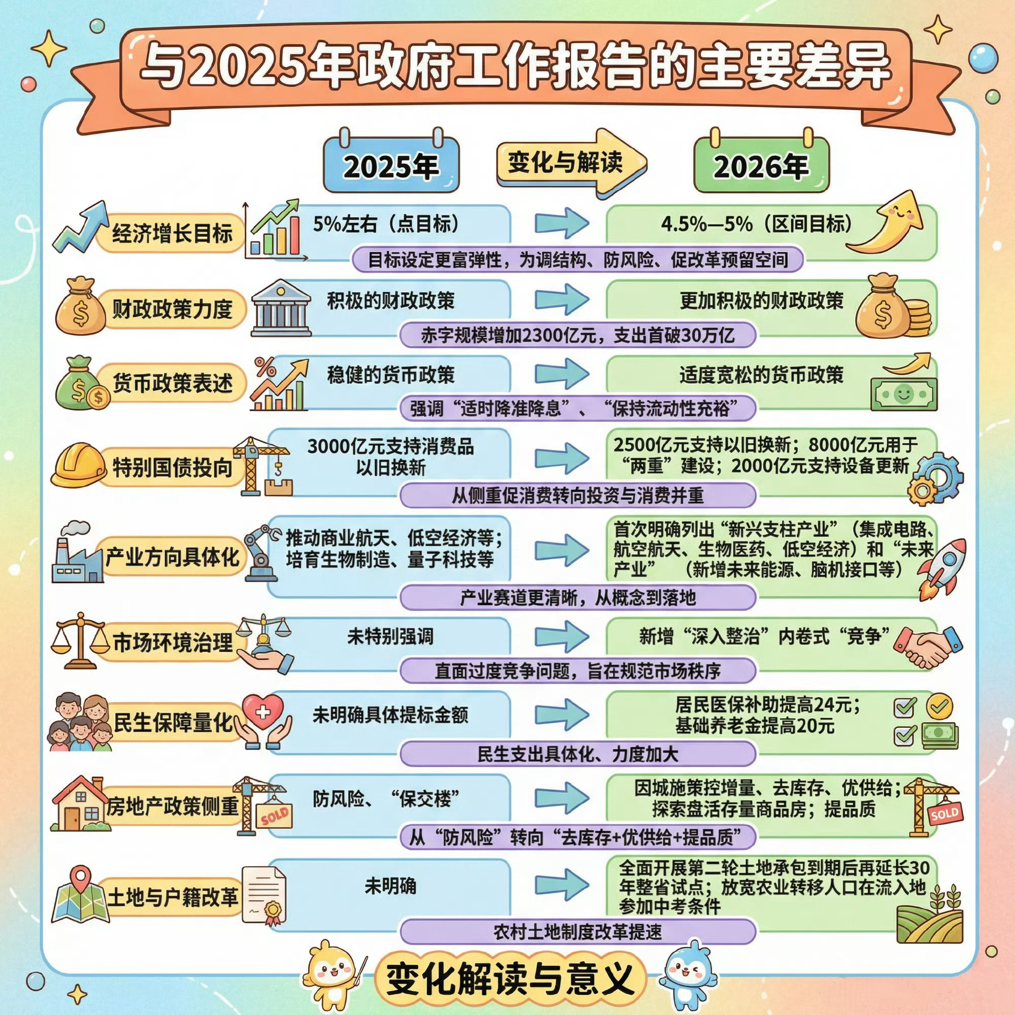 2026两会看点 一、核心财政数据对比(2025 vs 2026) (均来自2025政府工作报告)