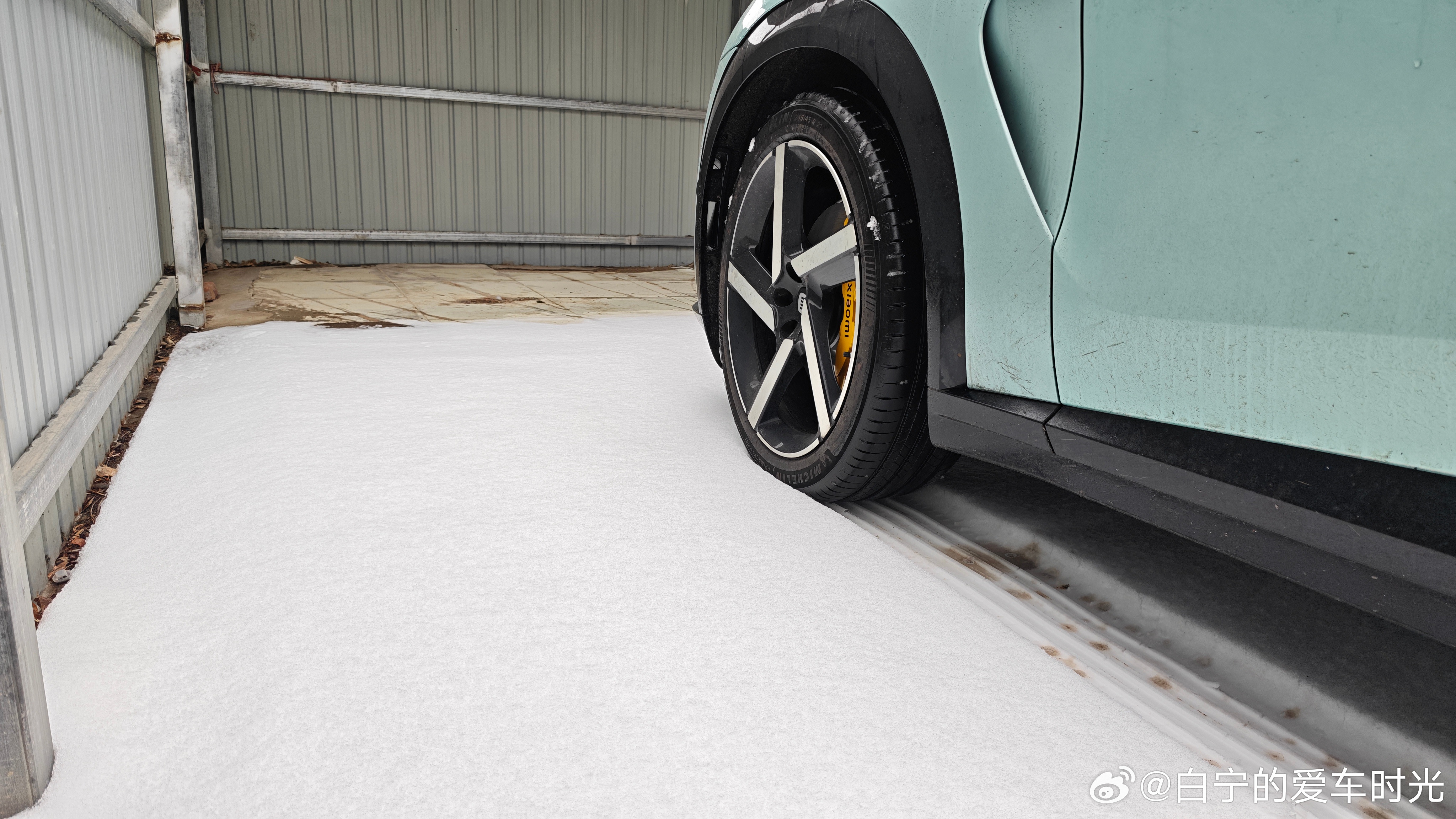 车库门口这雪完美的让我不舍得下车……白宁的小米yu7 这影青色在雪地里还挺美。