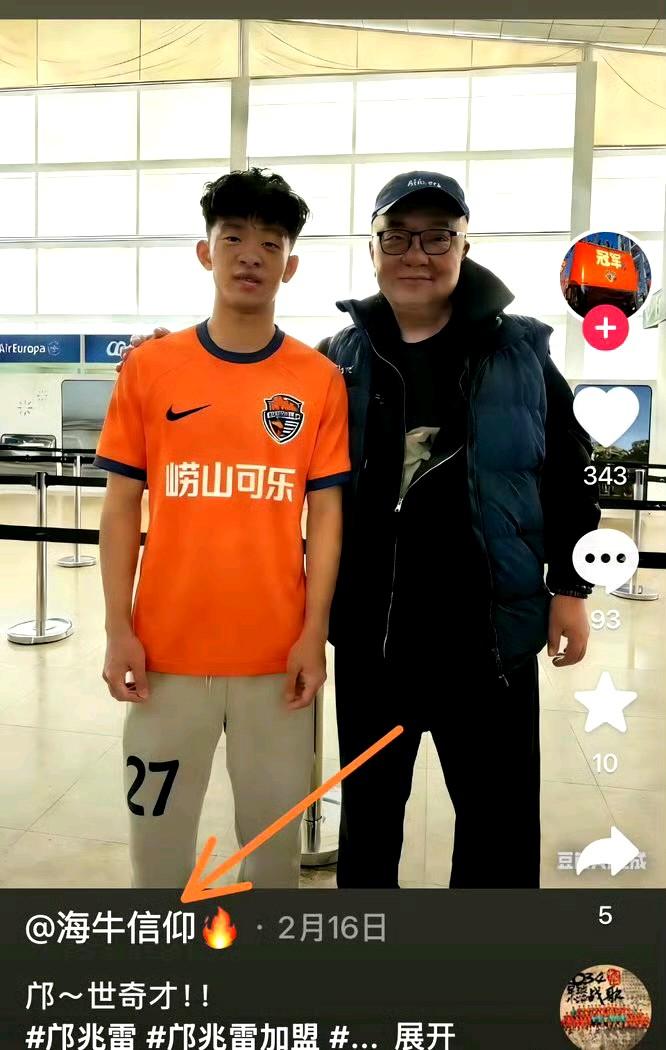 董路:邝兆镭已随青岛海牛出征! 董路社媒介绍邝兆镭跟随海牛去了云南,是25名出征球员之一。而最终23人将进入大名单。(图一) 个人认为邝兆镭肯定会出场,一是邝兆镭的能力,现在起码够替补出场。二是邝已经是海牛重点培养球员了。 图二:知名记者:邝兆镭对中超时降维打击。 图三,海牛球迷博主,邝兆镭身穿海牛球衣和董路合影。(有人说是P的)。 所以中超首轮,我们期待邝兆镭上场,期待成为中超09第一人。中国足球小将加油!加油!