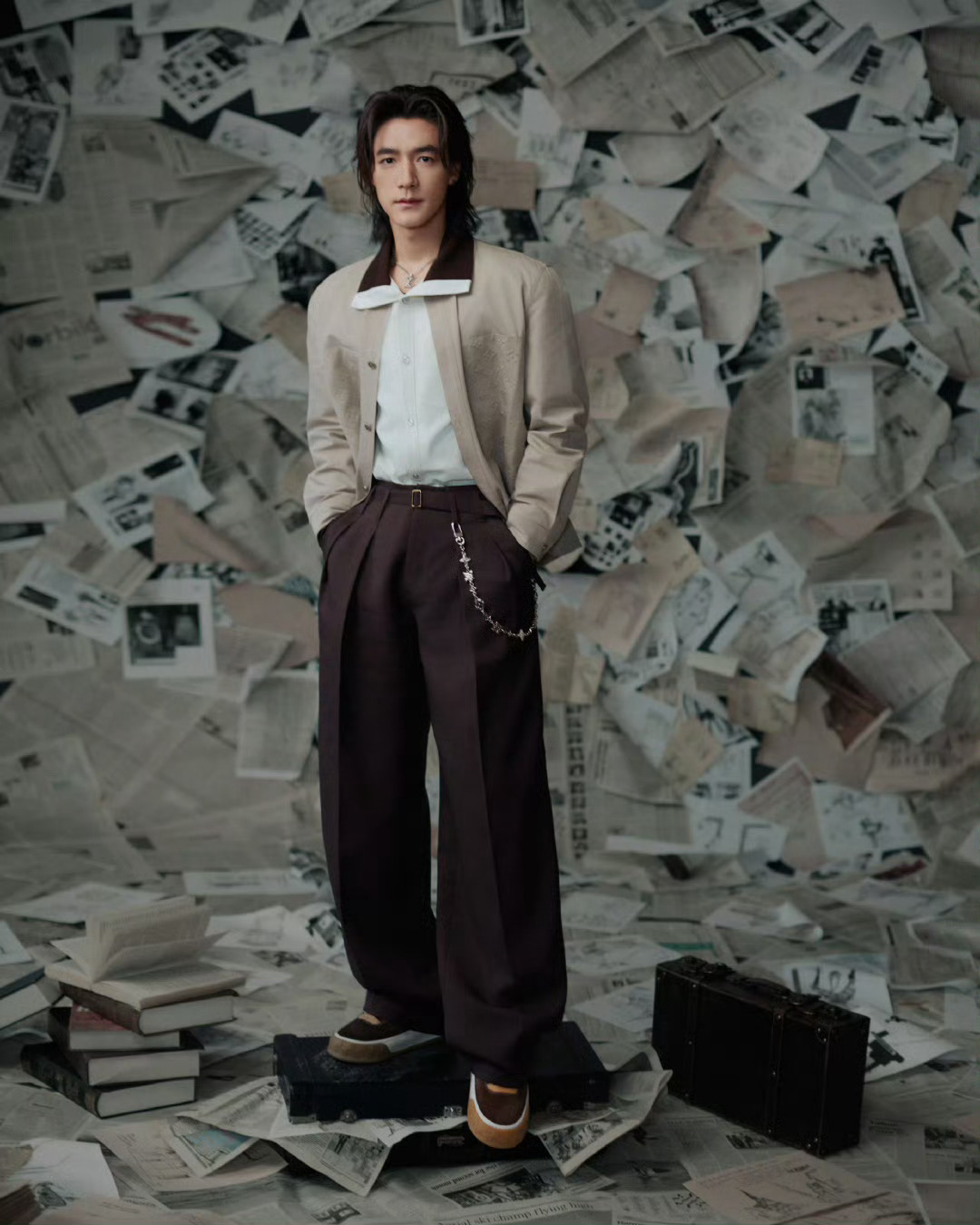 此沙带玫瑰的小王子演绎他垂眸立于旧报纸间,玫瑰在侧,故事在眼底。不是童话里的王子