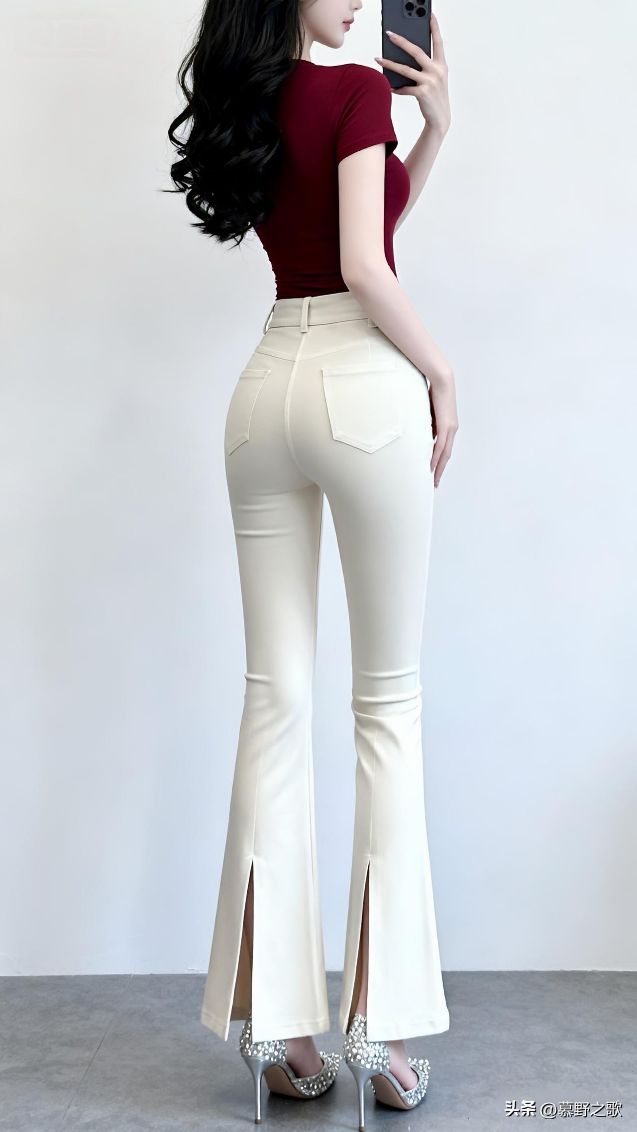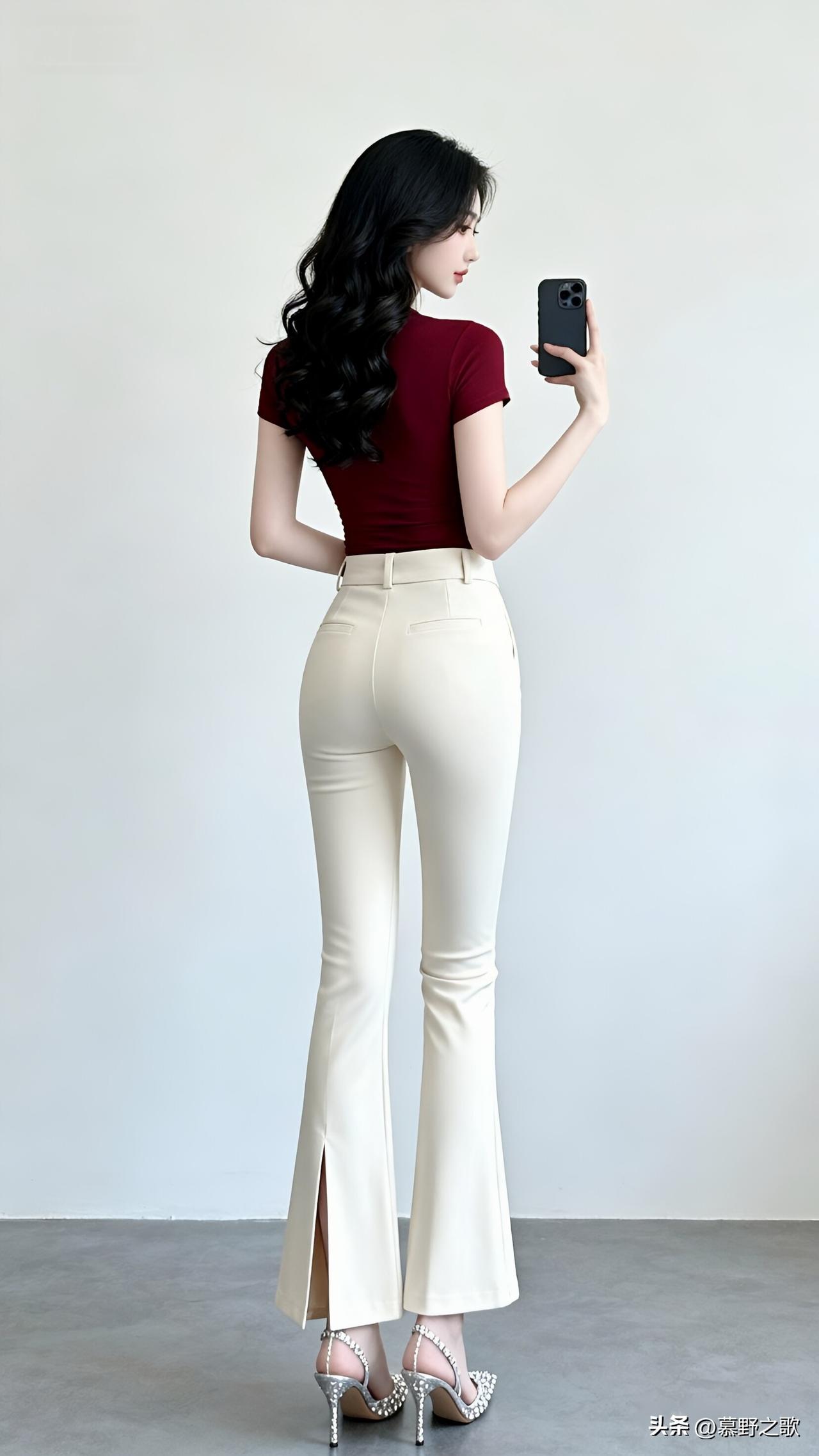 复古风穿搭,酒红色上衣+米色喇叭裤,搭配闪亮高跟鞋,尽显优雅气质!👠💃